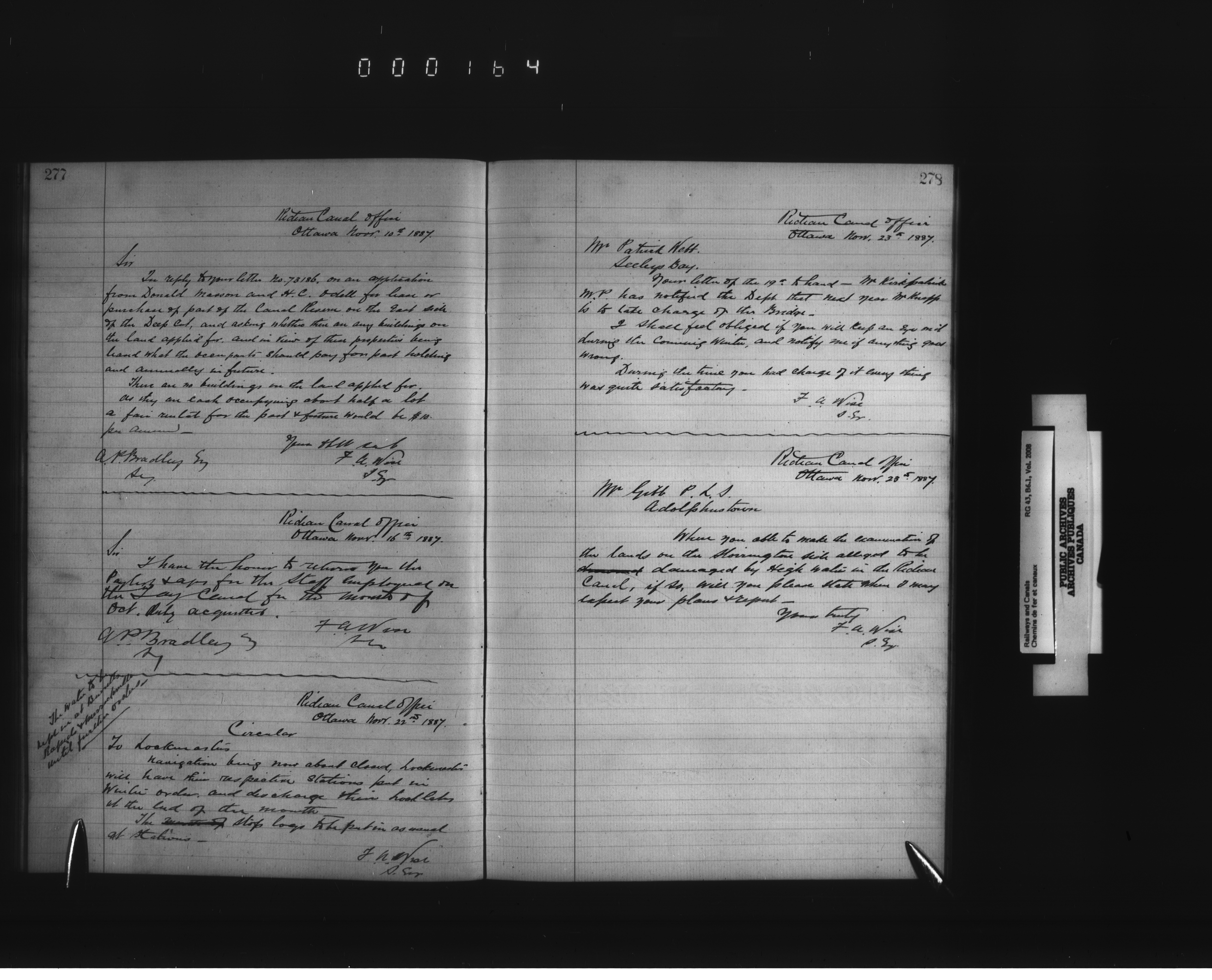 Department of Railways and Canals, Superintending Engineer of the Rideau Canal : Letterbooks : T-2471