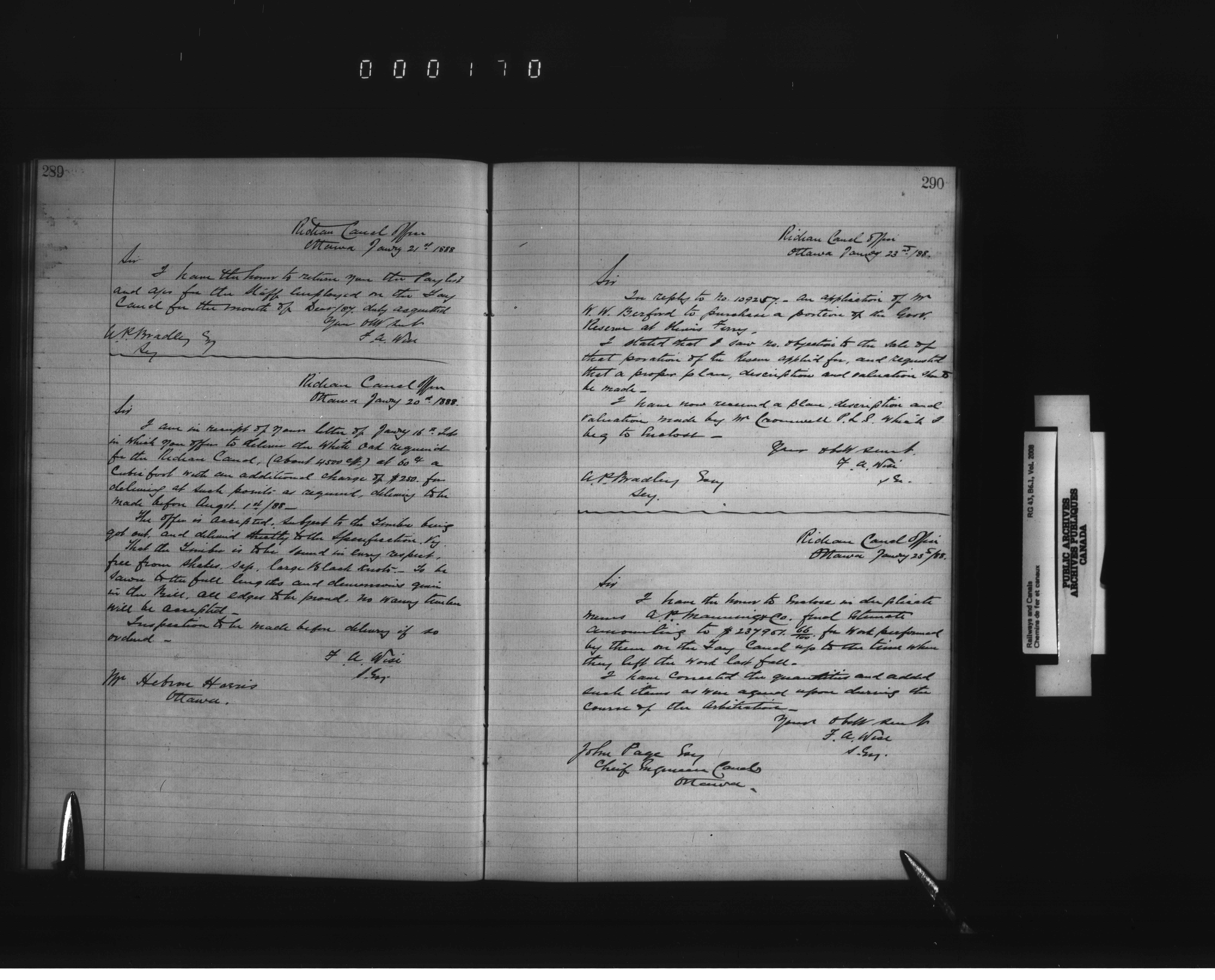 Department of Railways and Canals, Superintending Engineer of the Rideau Canal : Letterbooks : T-2471