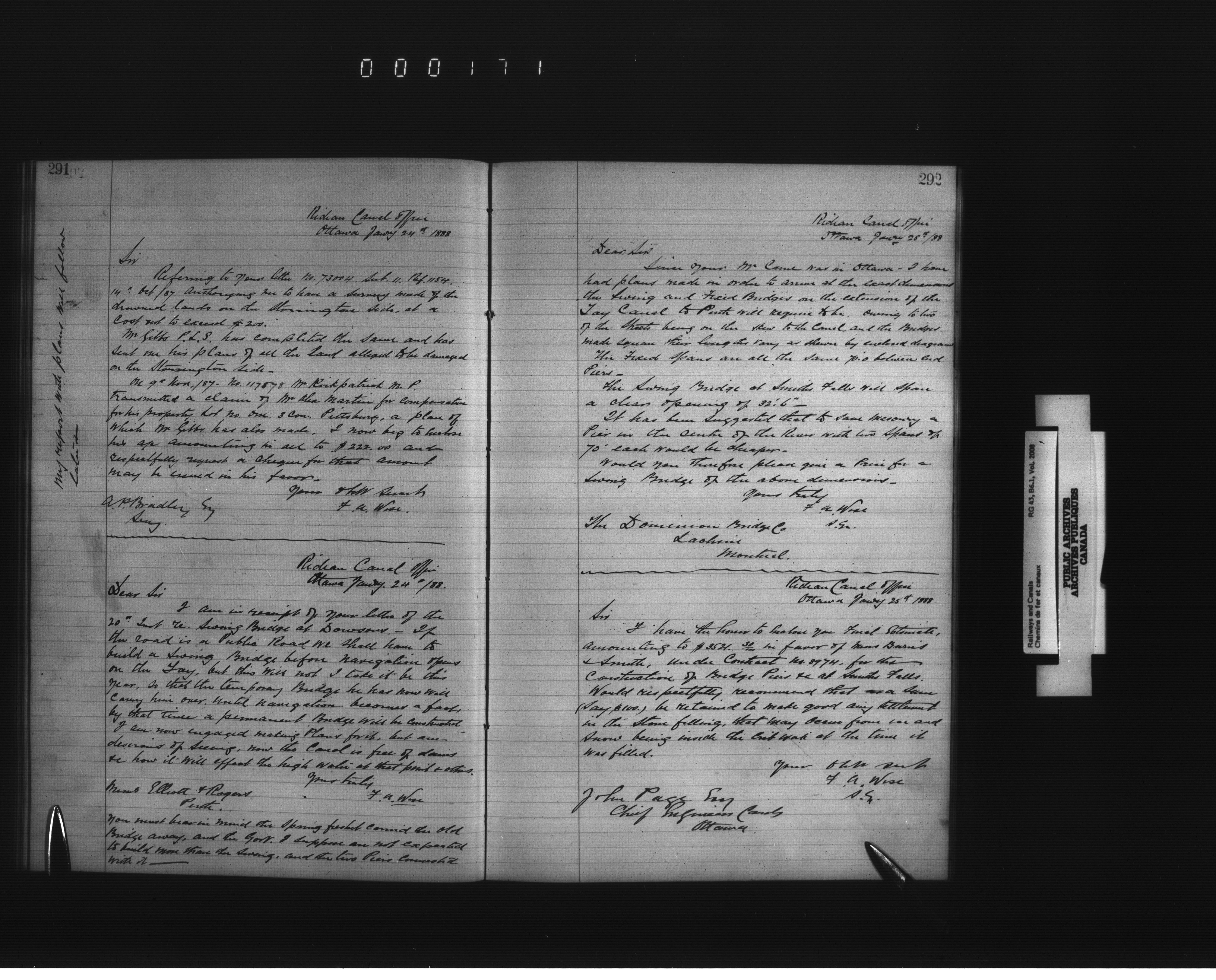 Department of Railways and Canals, Superintending Engineer of the Rideau Canal : Letterbooks : T-2471