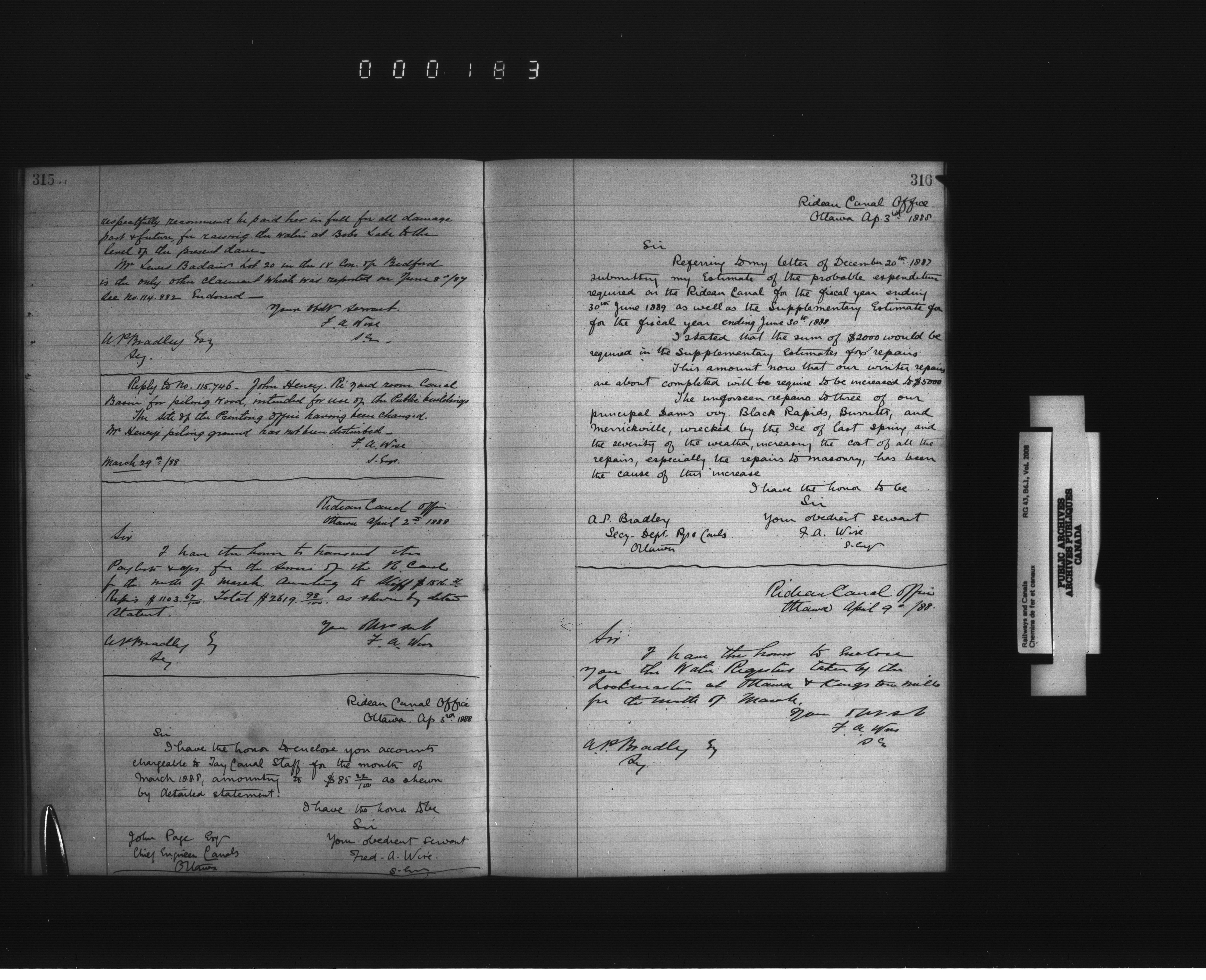 Department of Railways and Canals, Superintending Engineer of the Rideau Canal : Letterbooks - 2471