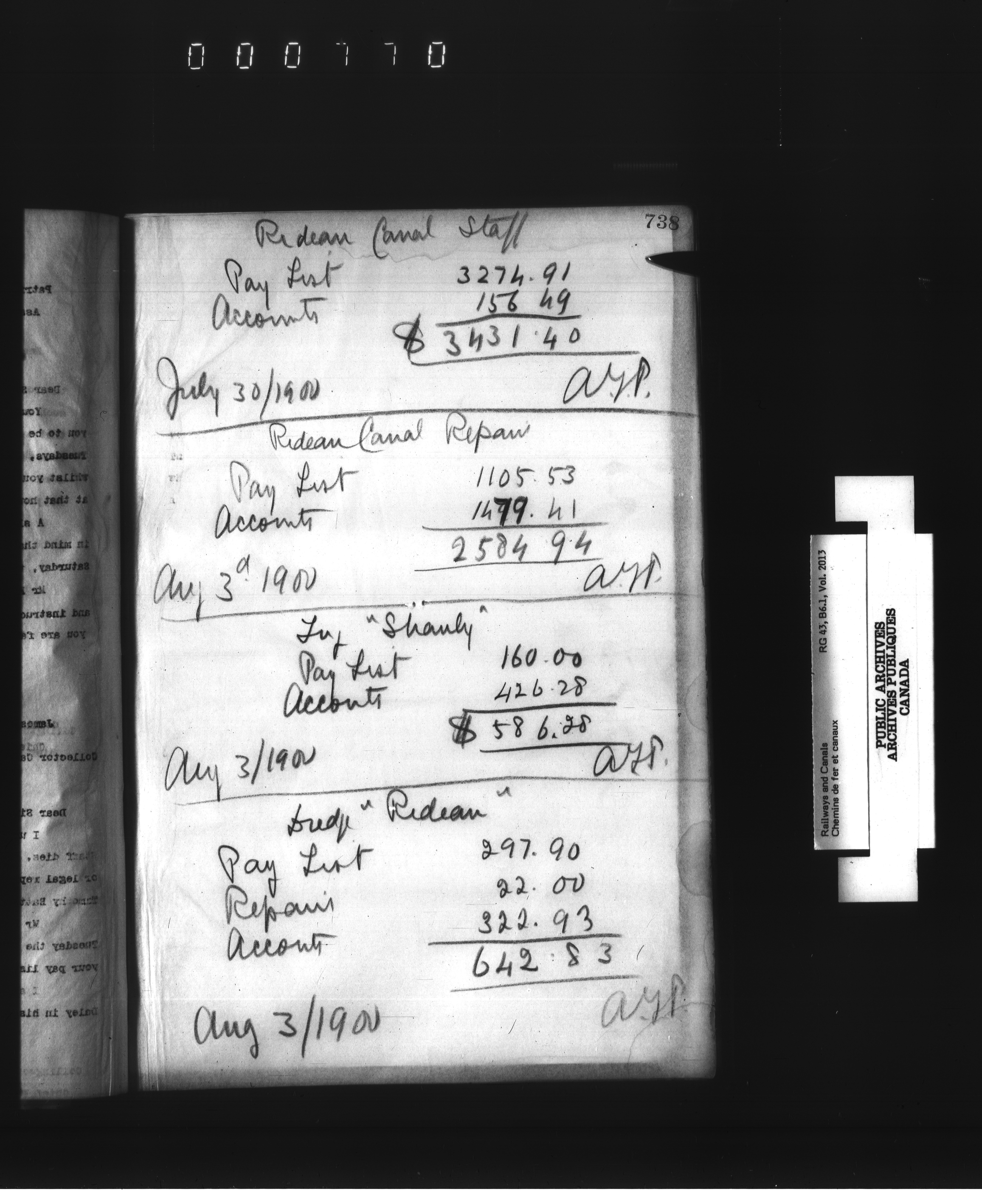 Department of Railways and Canals, Superintending Engineer of the Rideau Canal : Letterbooks : T-2474