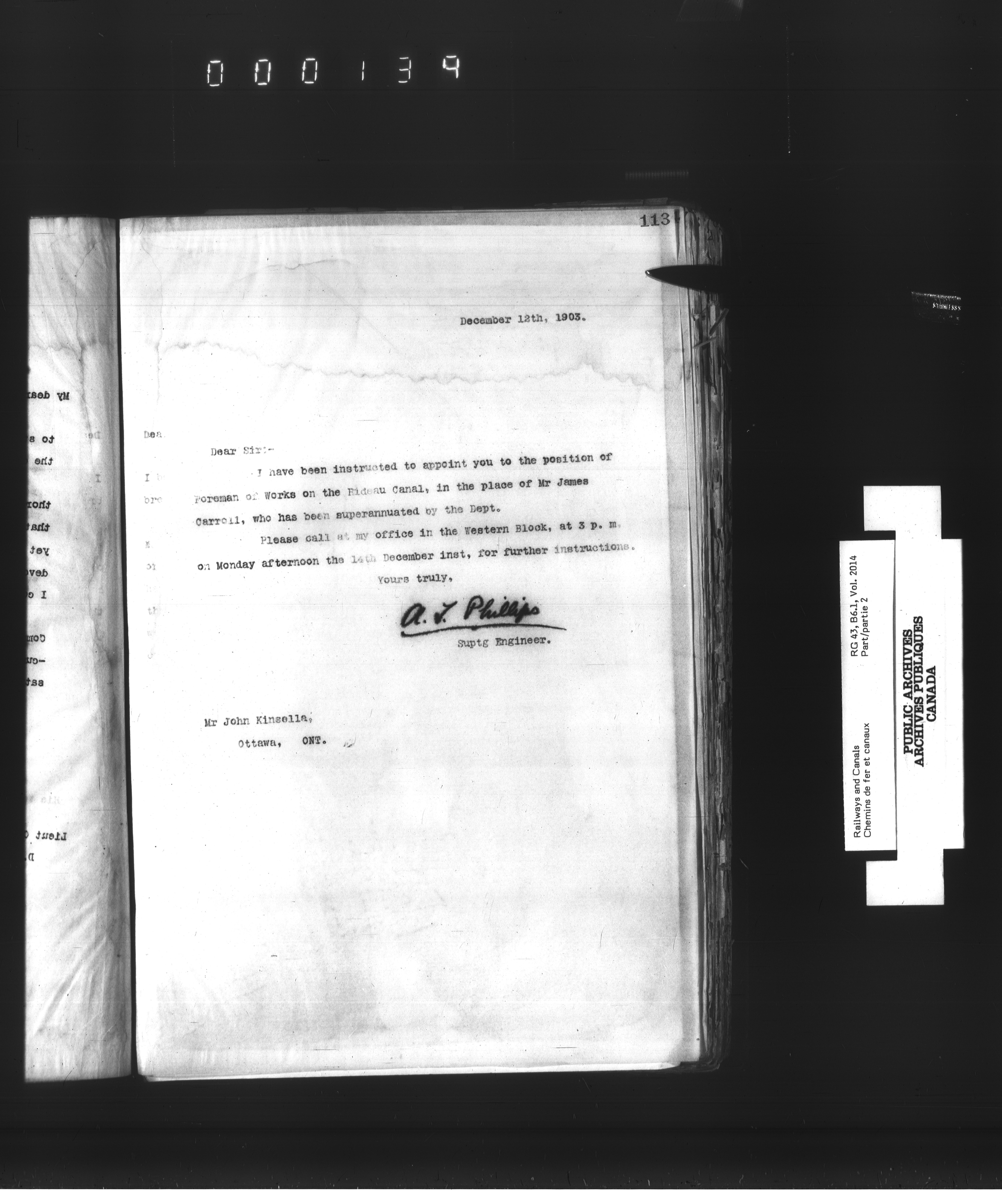 Department of Railways and Canals, Superintending Engineer of the Rideau Canal : Letterbooks - 2474