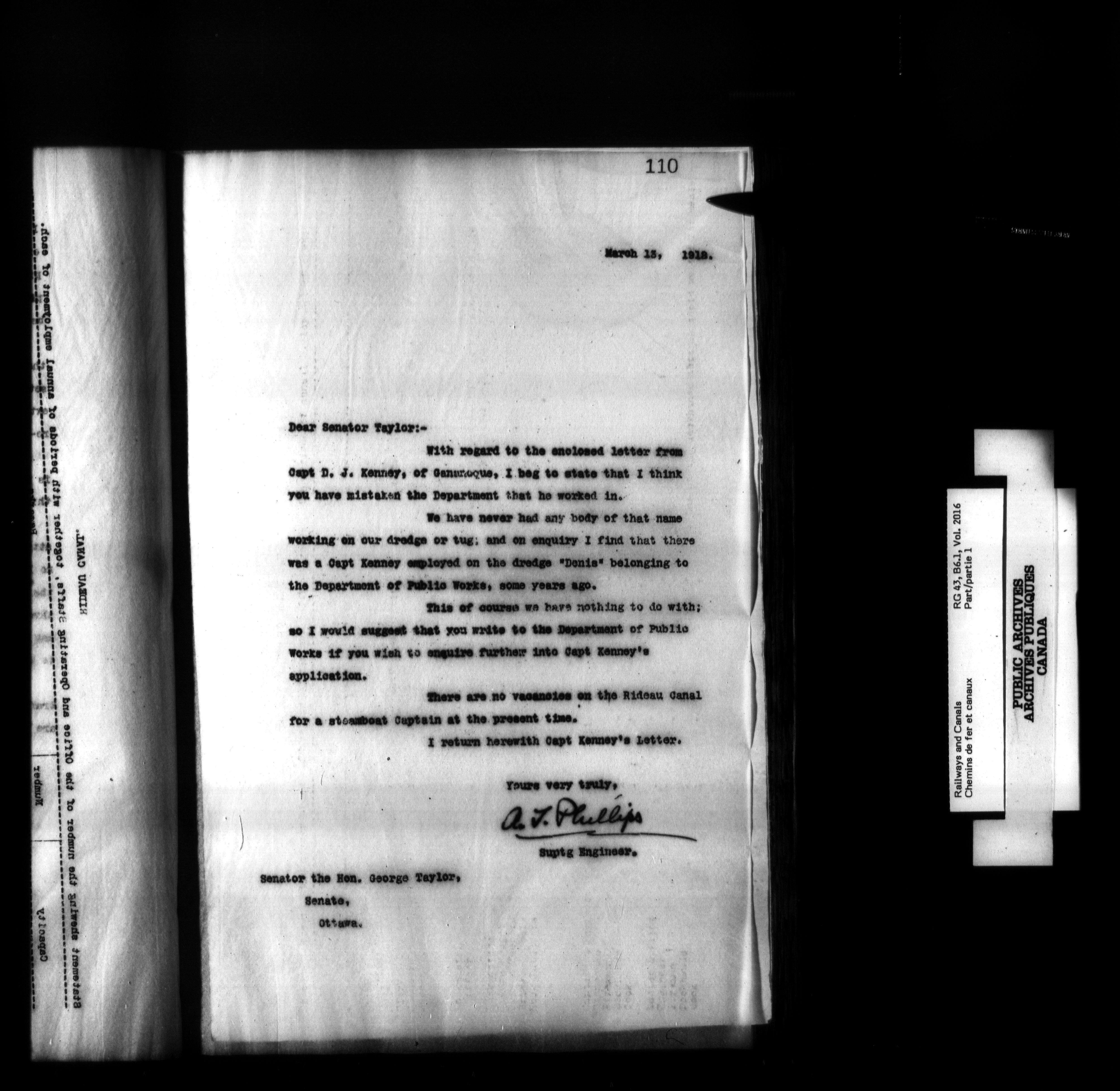 Department of Railways and Canals, Superintending Engineer of the Rideau Canal : Letterbooks : T-2479