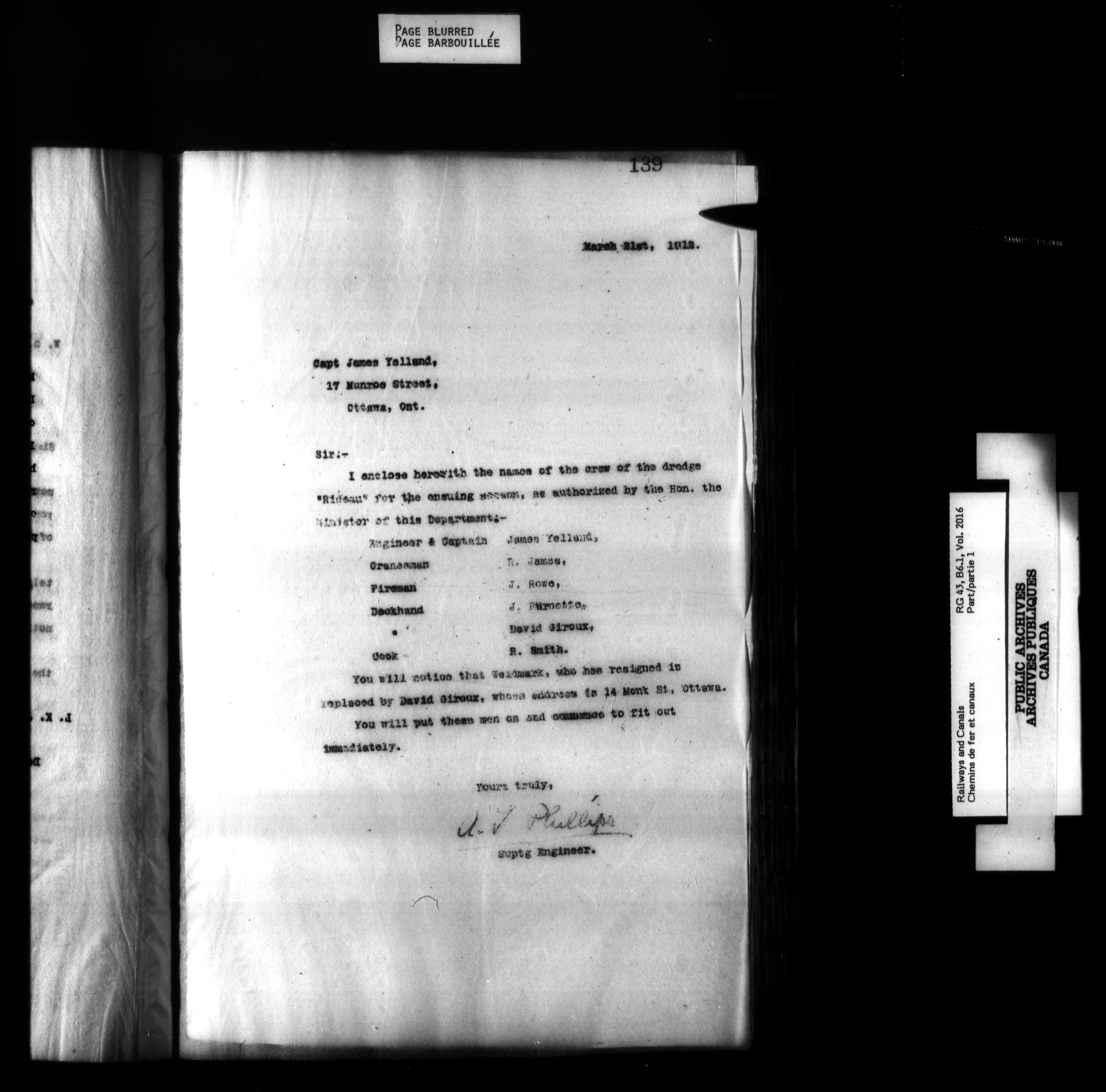 Department of Railways and Canals, Superintending Engineer of the Rideau Canal : Letterbooks : T-2479