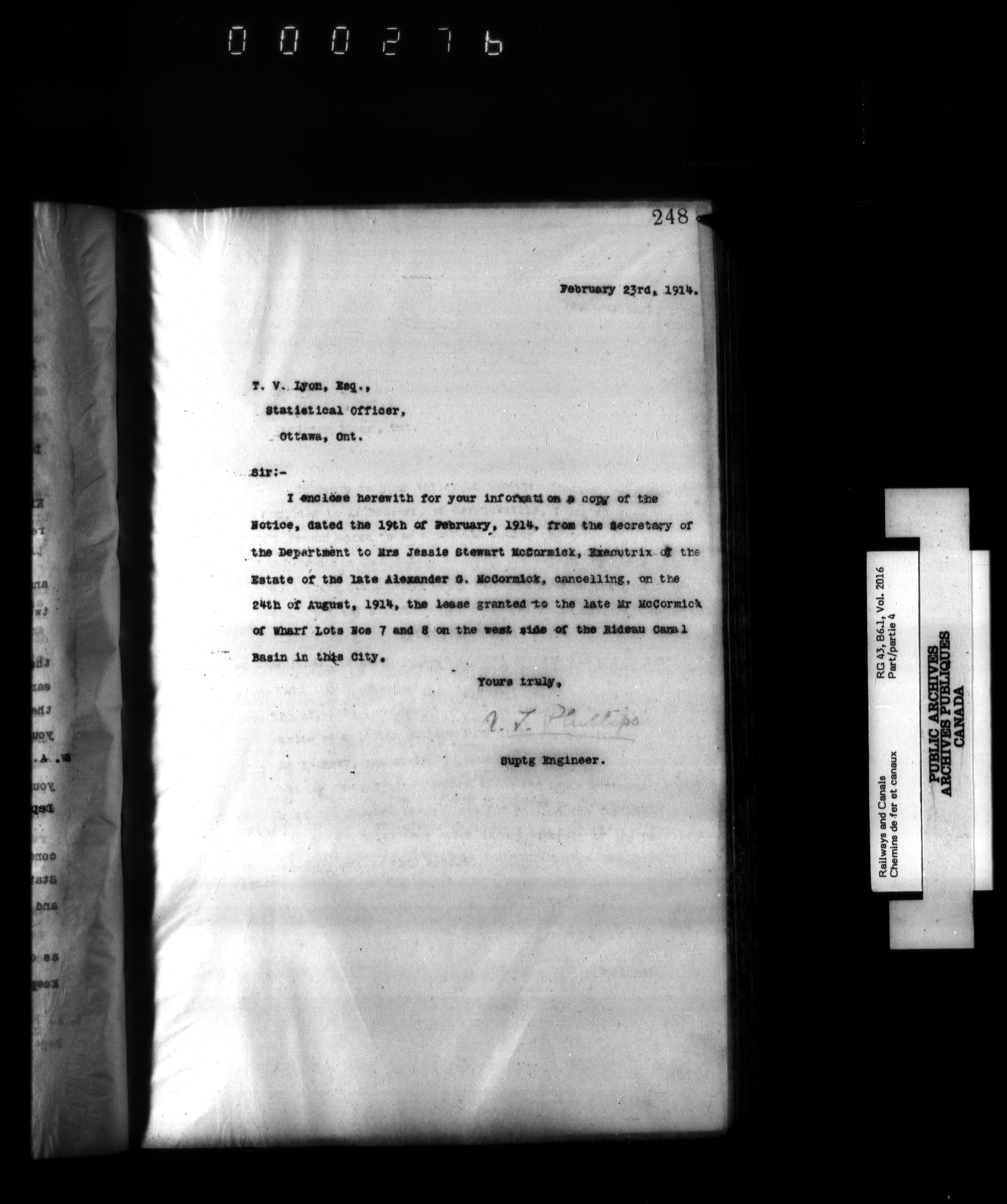Department of Railways and Canals, Superintending Engineer of the Rideau Canal : Letterbooks : T-2482