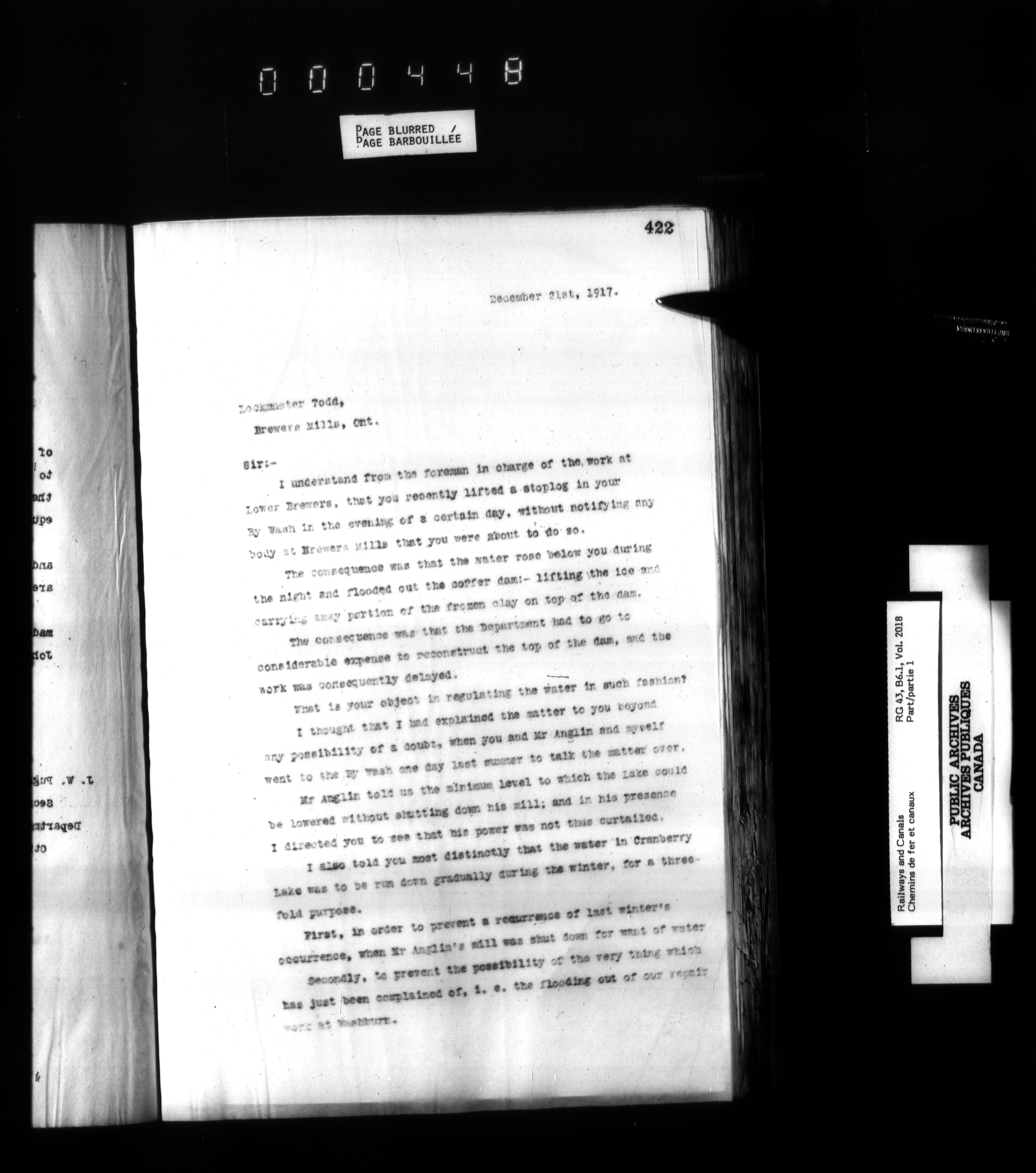 Department of Railways and Canals, Superintending Engineer of the Rideau Canal : Letterbooks - 2485