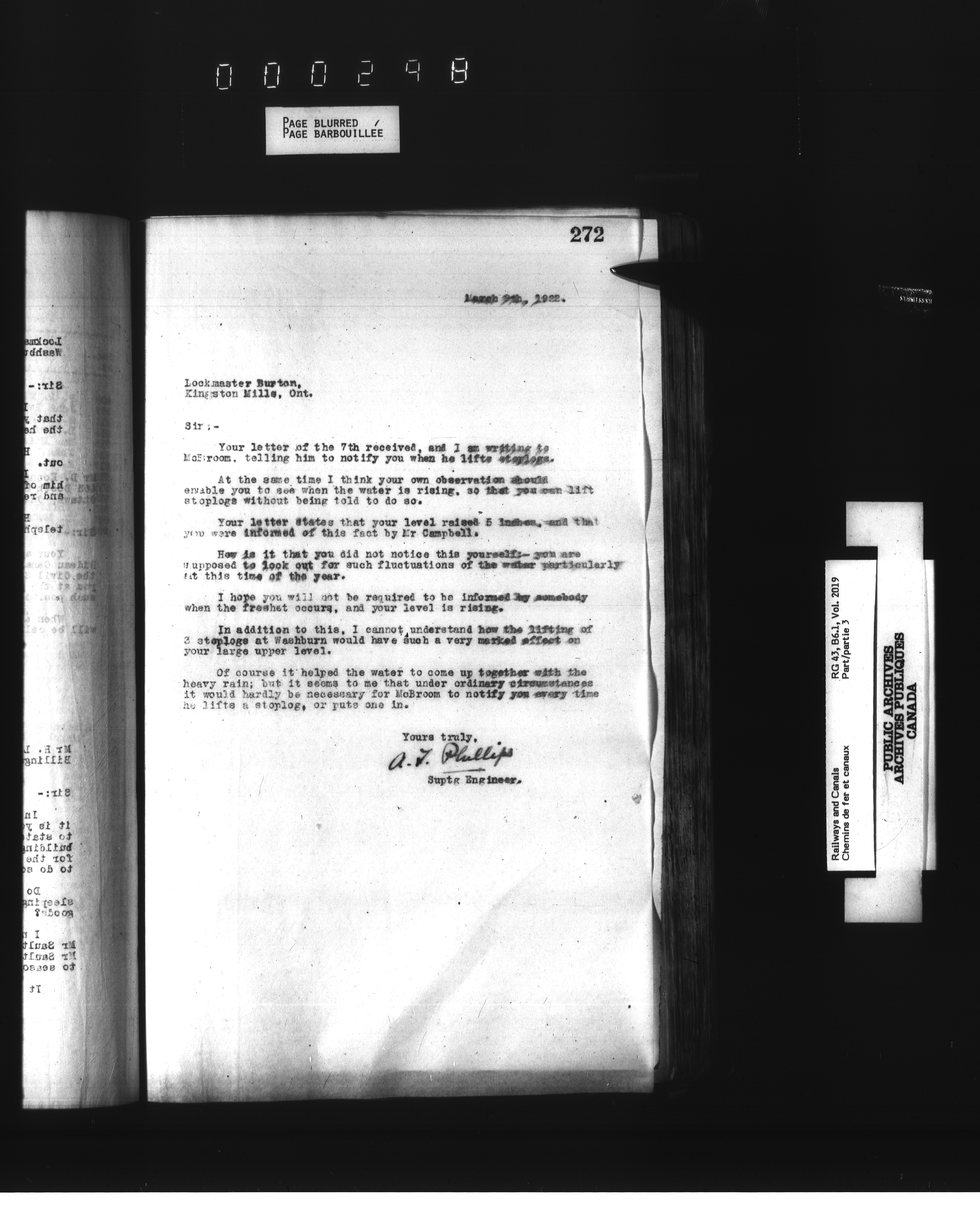 Department of Railways and Canals, Superintending Engineer of the Rideau Canal : Letterbooks : T-2490