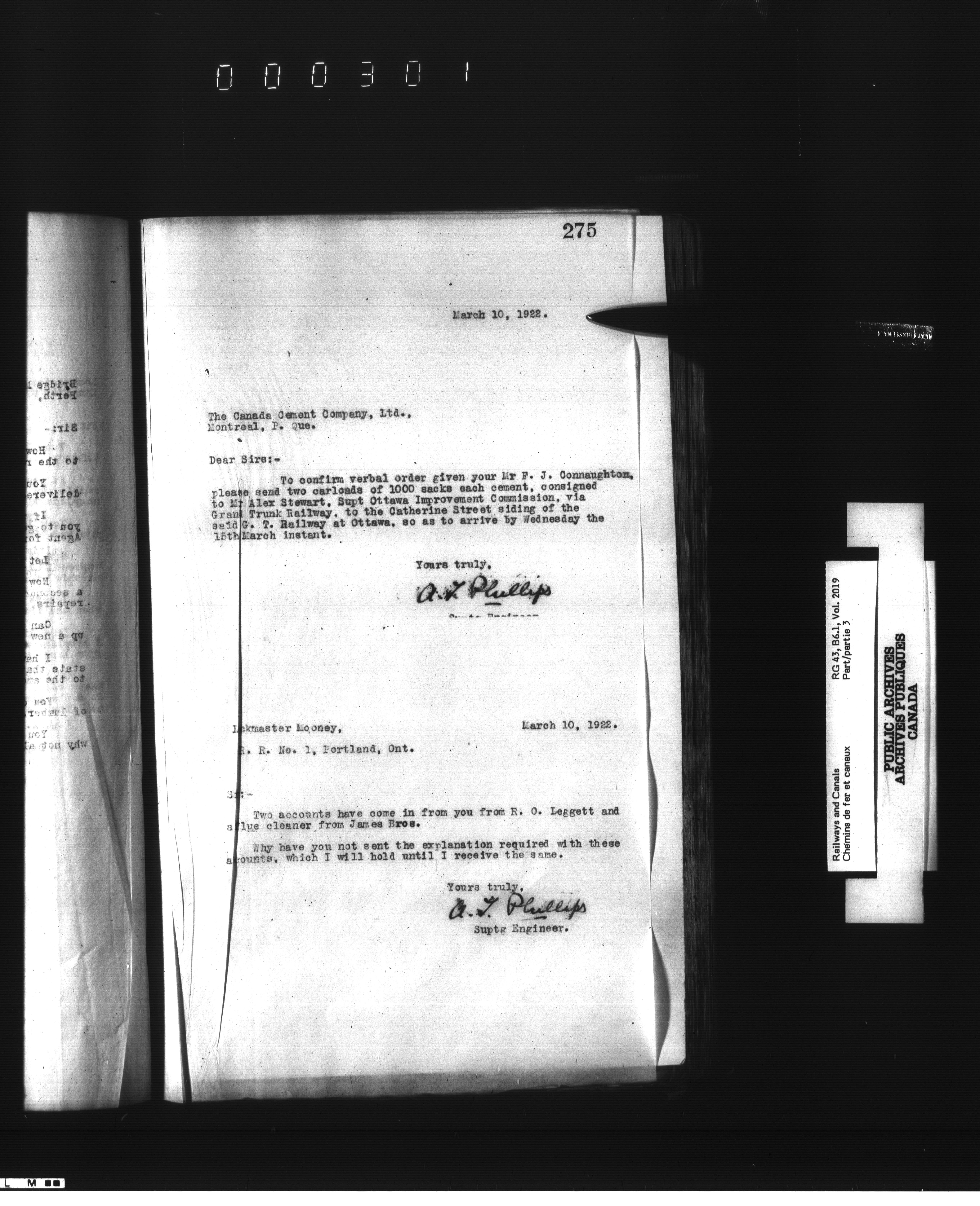 Department of Railways and Canals, Superintending Engineer of the Rideau Canal : Letterbooks : T-2490