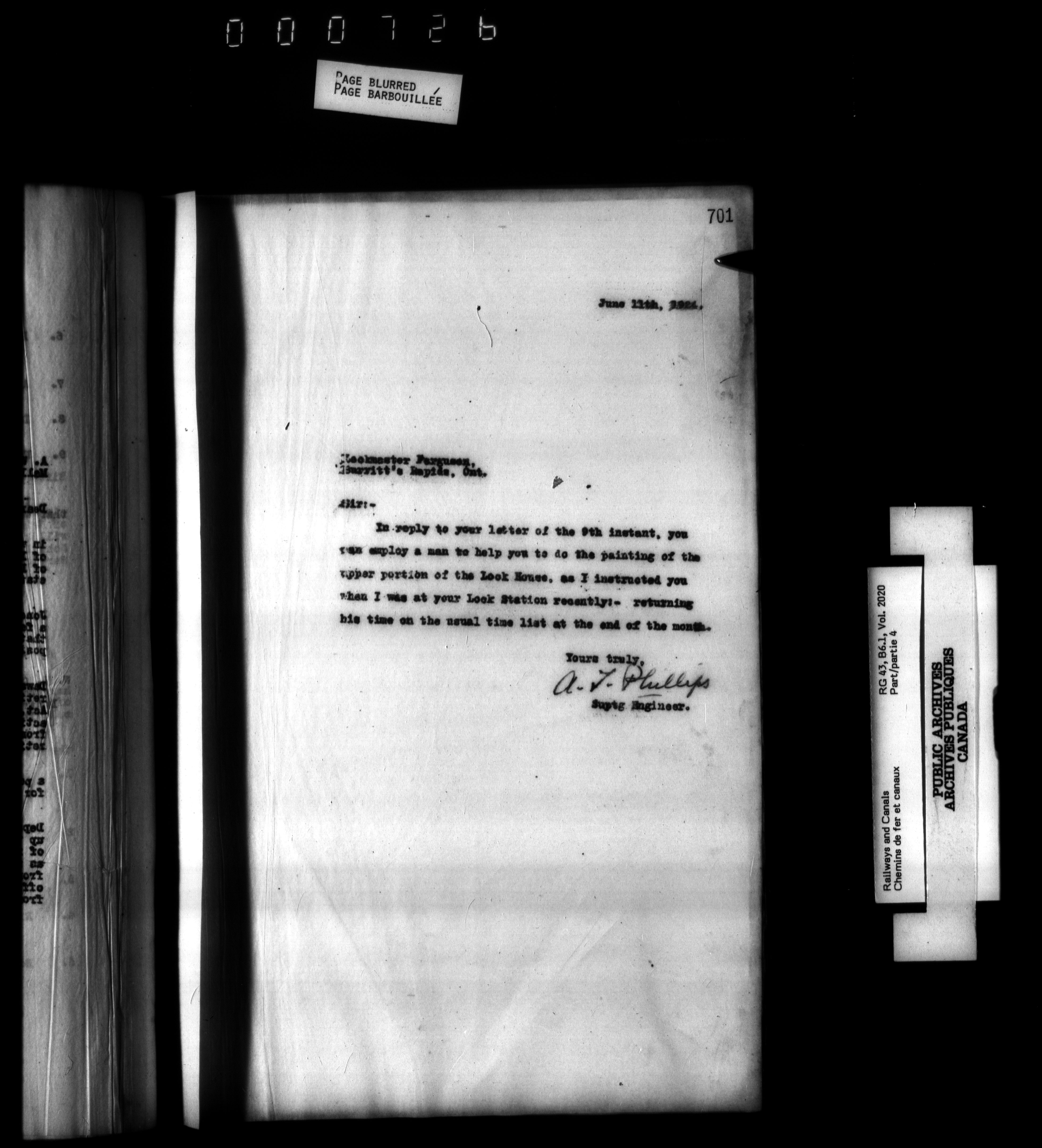 Department of Railways and Canals, Superintending Engineer of the Rideau Canal : Letterbooks : T-2492