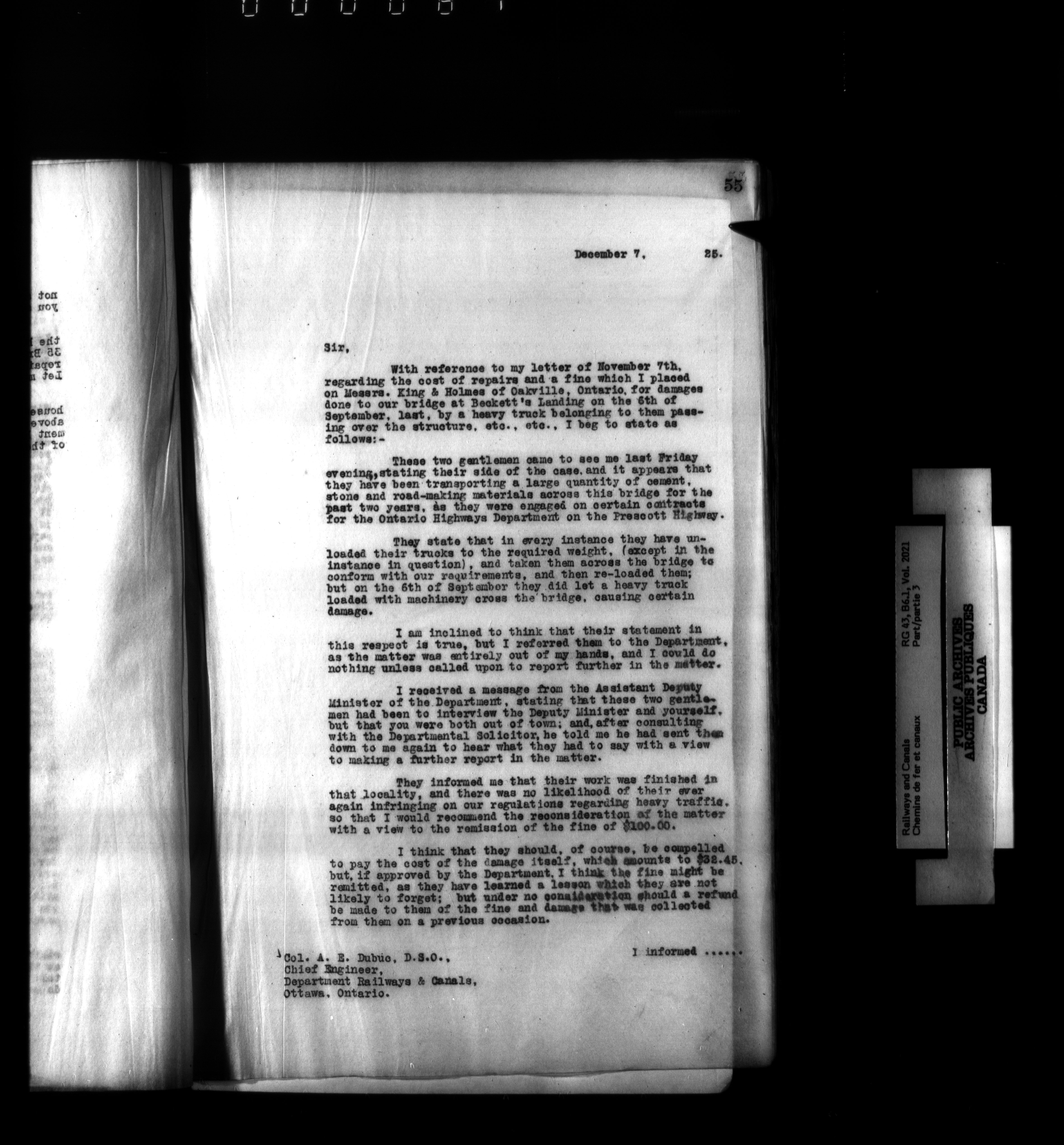 Department of Railways and Canals, Superintending Engineer of the Rideau Canal : Letterbooks : T-2494