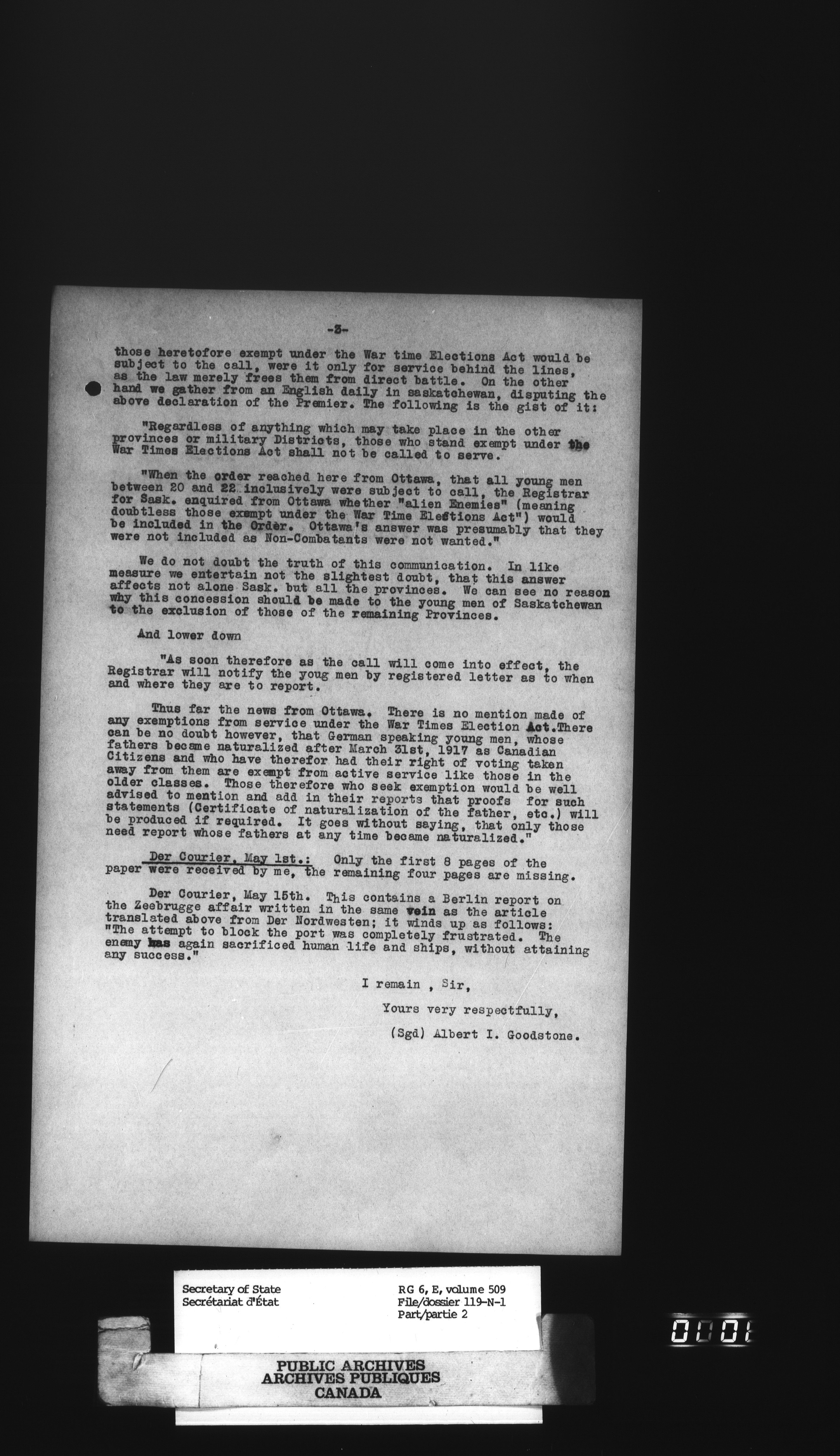 Secretary of State : Chief Press Censor - 25