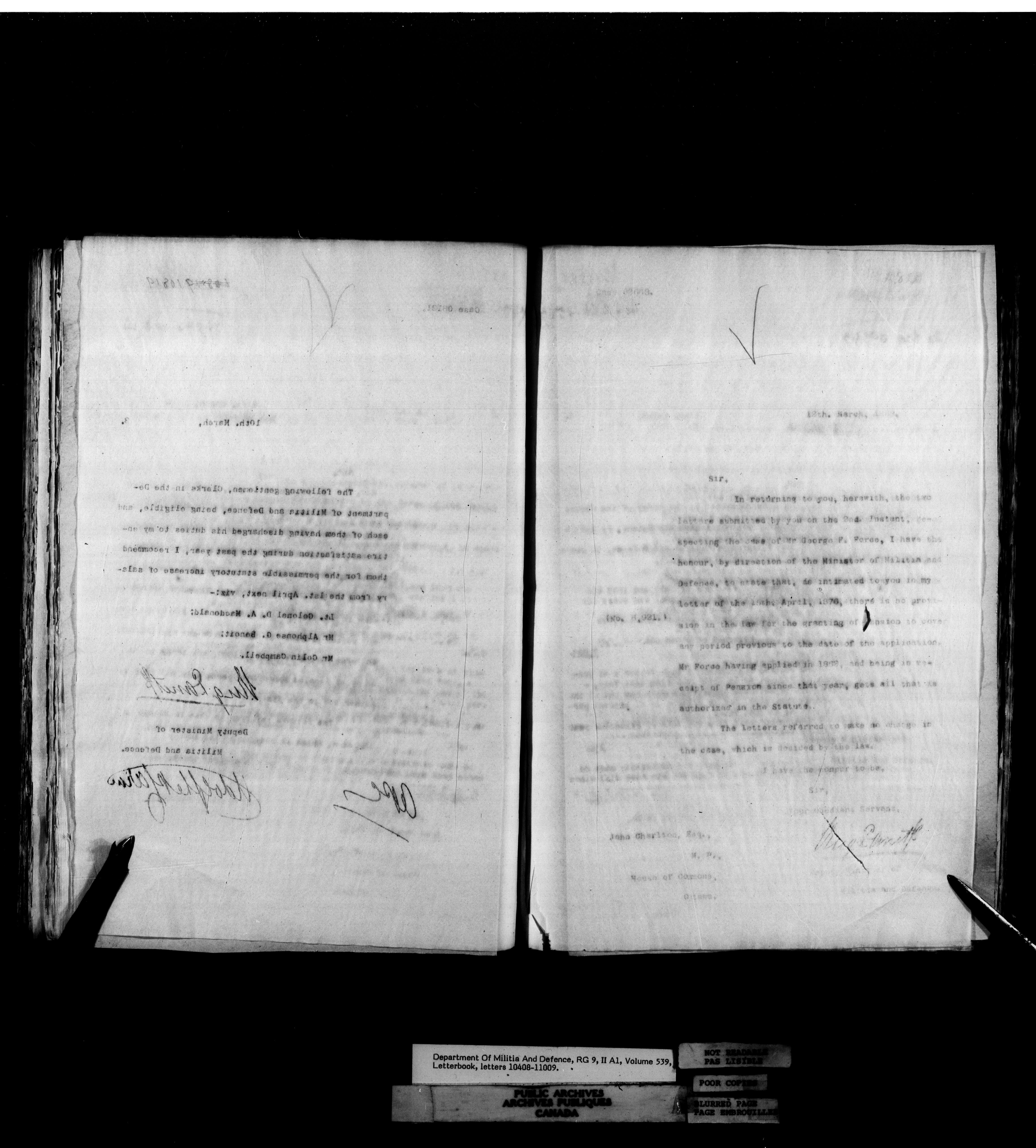 Letterbooks of the deputy minister and the adjutant general, 1868-1920 - 250