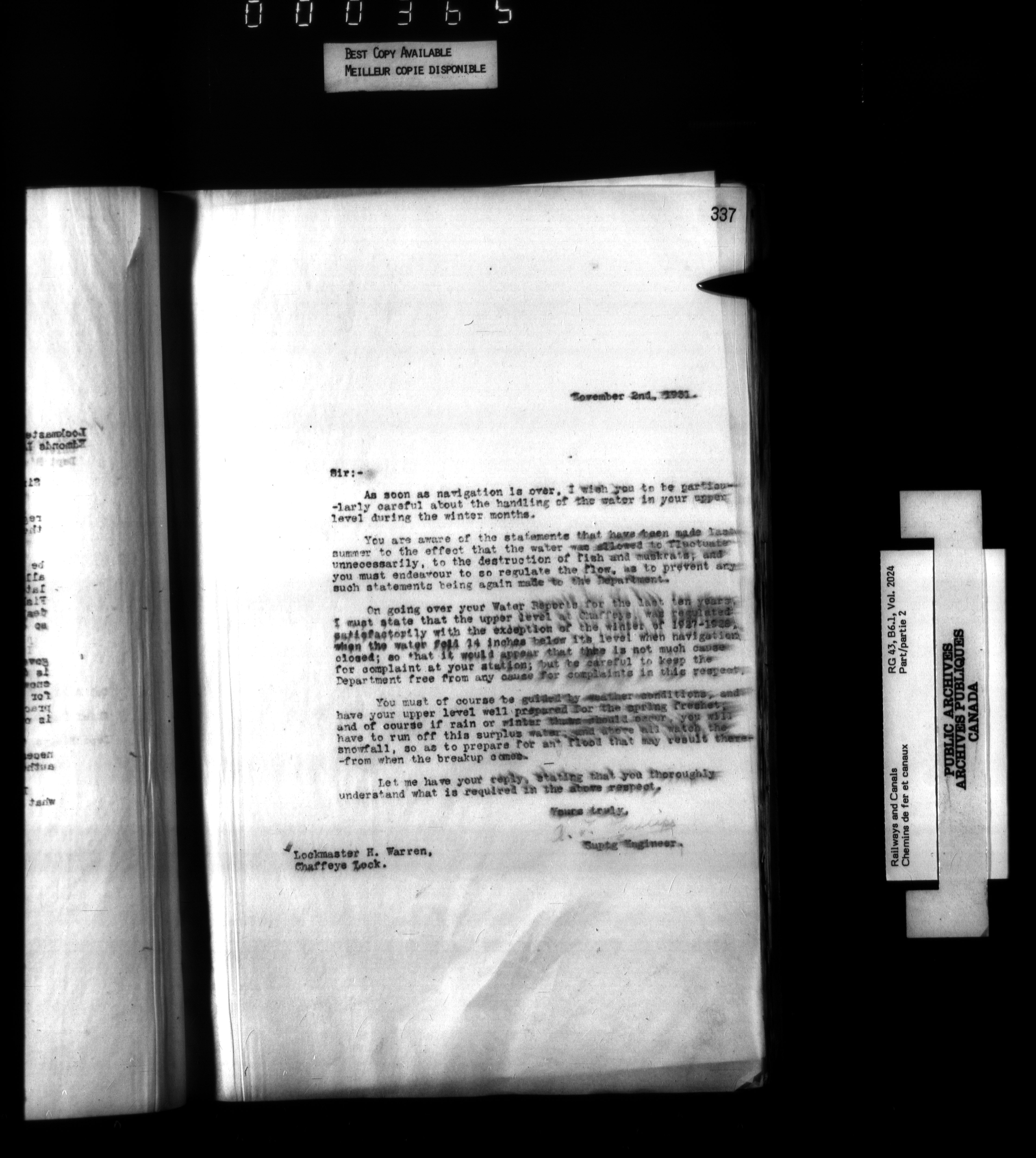 Department of Railways and Canals, Superintending Engineer of the Rideau Canal : Letterbooks - 2501