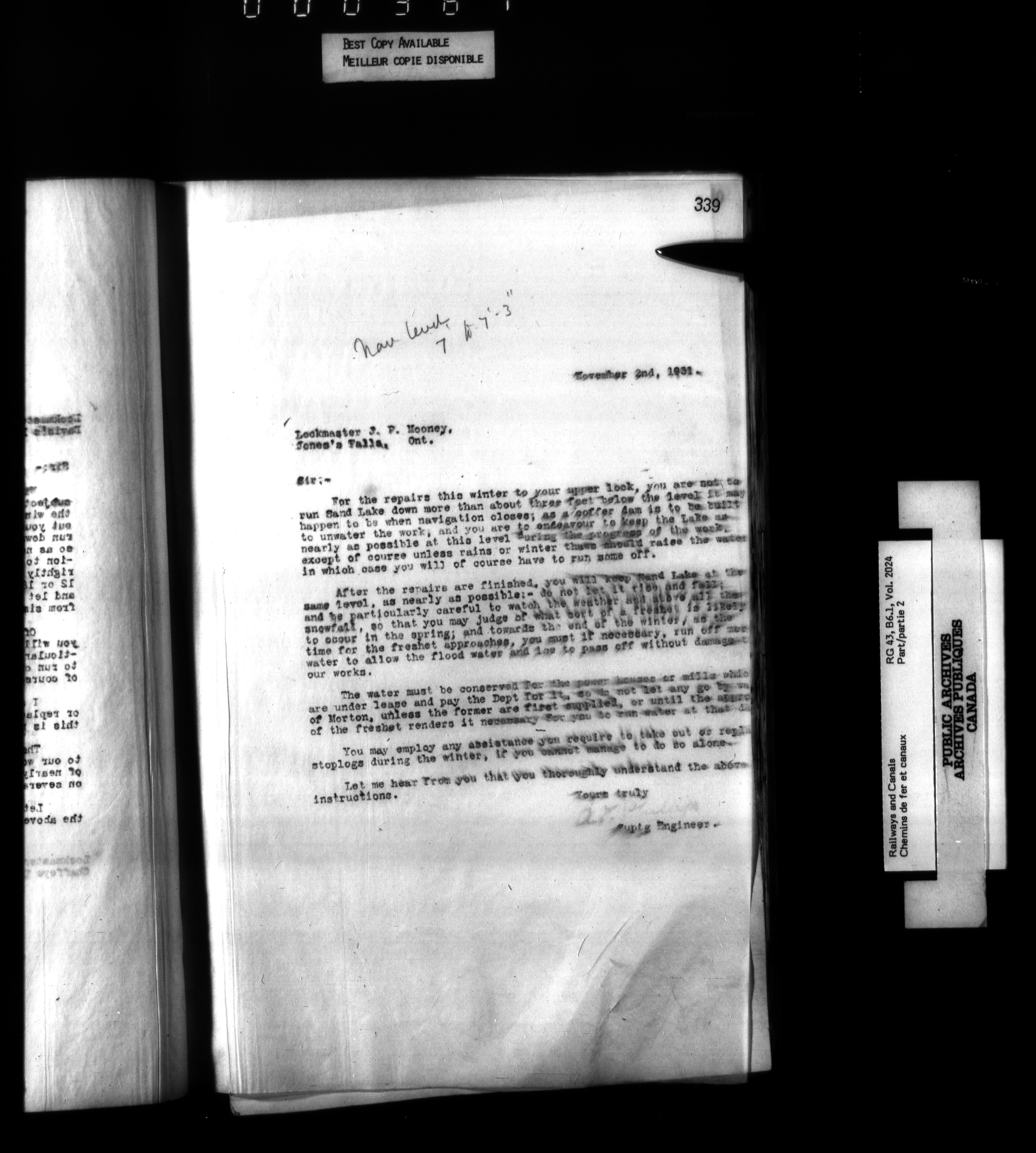 Department of Railways and Canals, Superintending Engineer of the Rideau Canal : Letterbooks - 2501