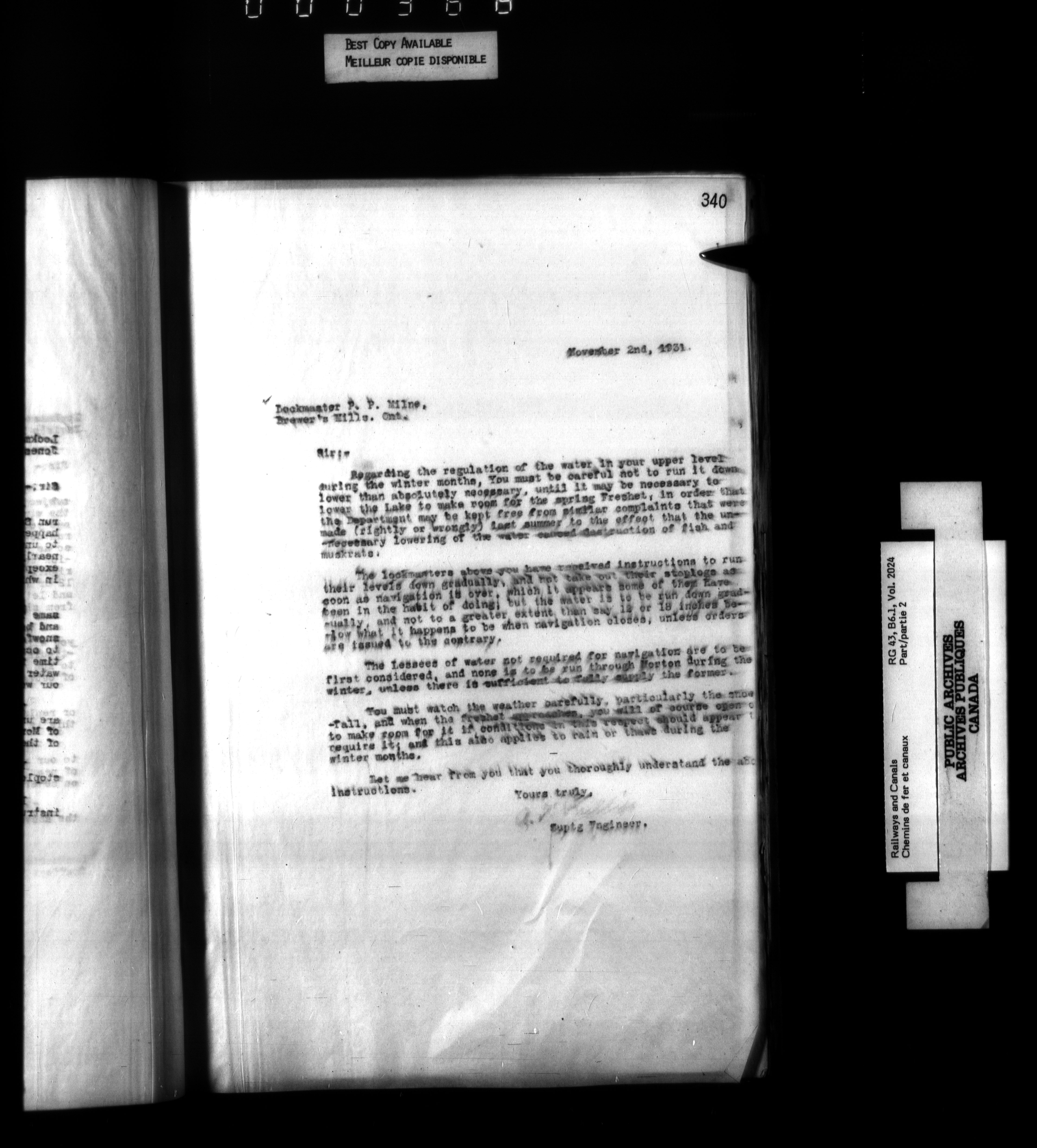 Department of Railways and Canals, Superintending Engineer of the Rideau Canal : Letterbooks - 2501