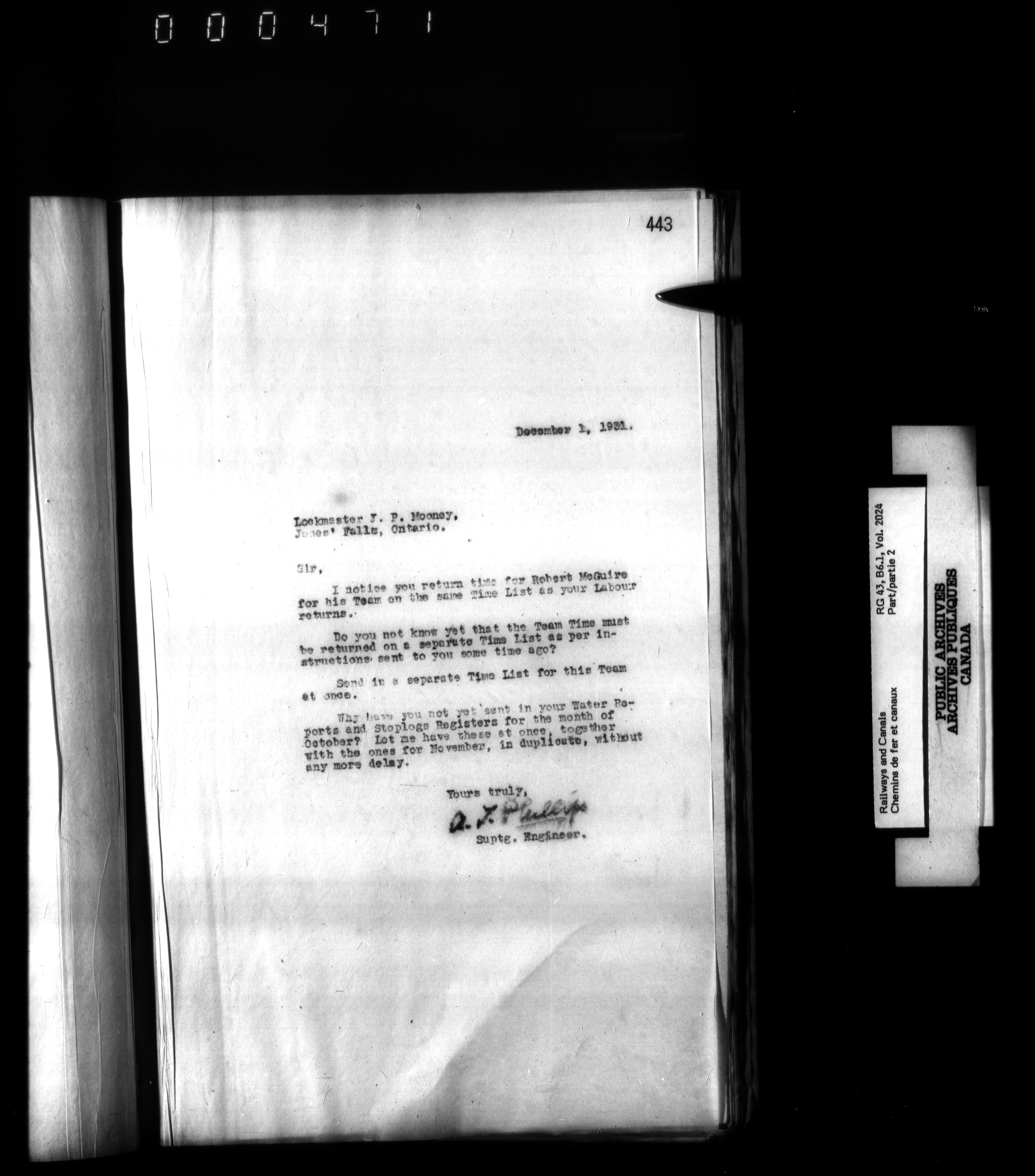 Department of Railways and Canals, Superintending Engineer of the Rideau Canal : Letterbooks - 2502