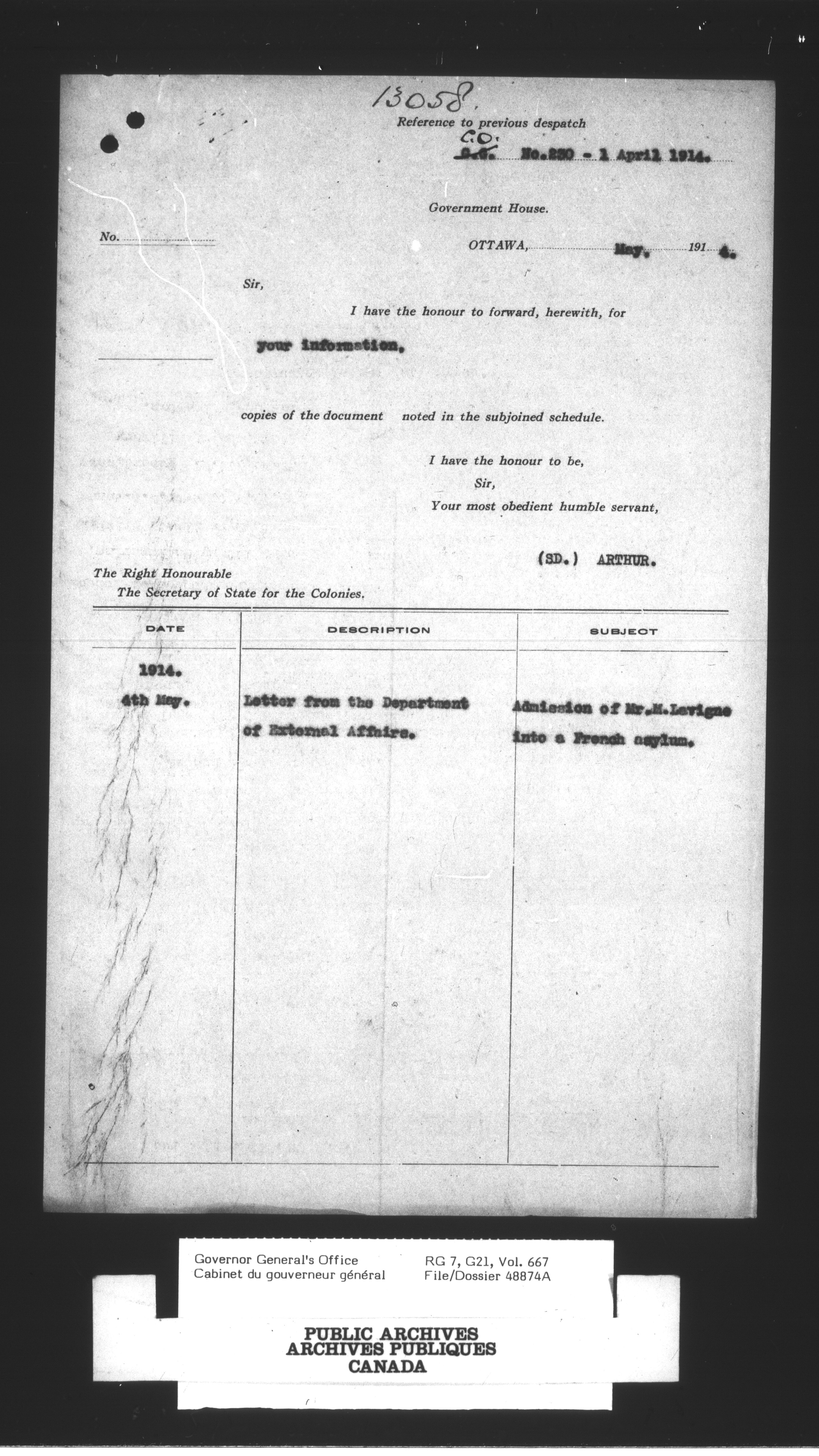 Vol. 667, file 48874-669, file 54713, 1a