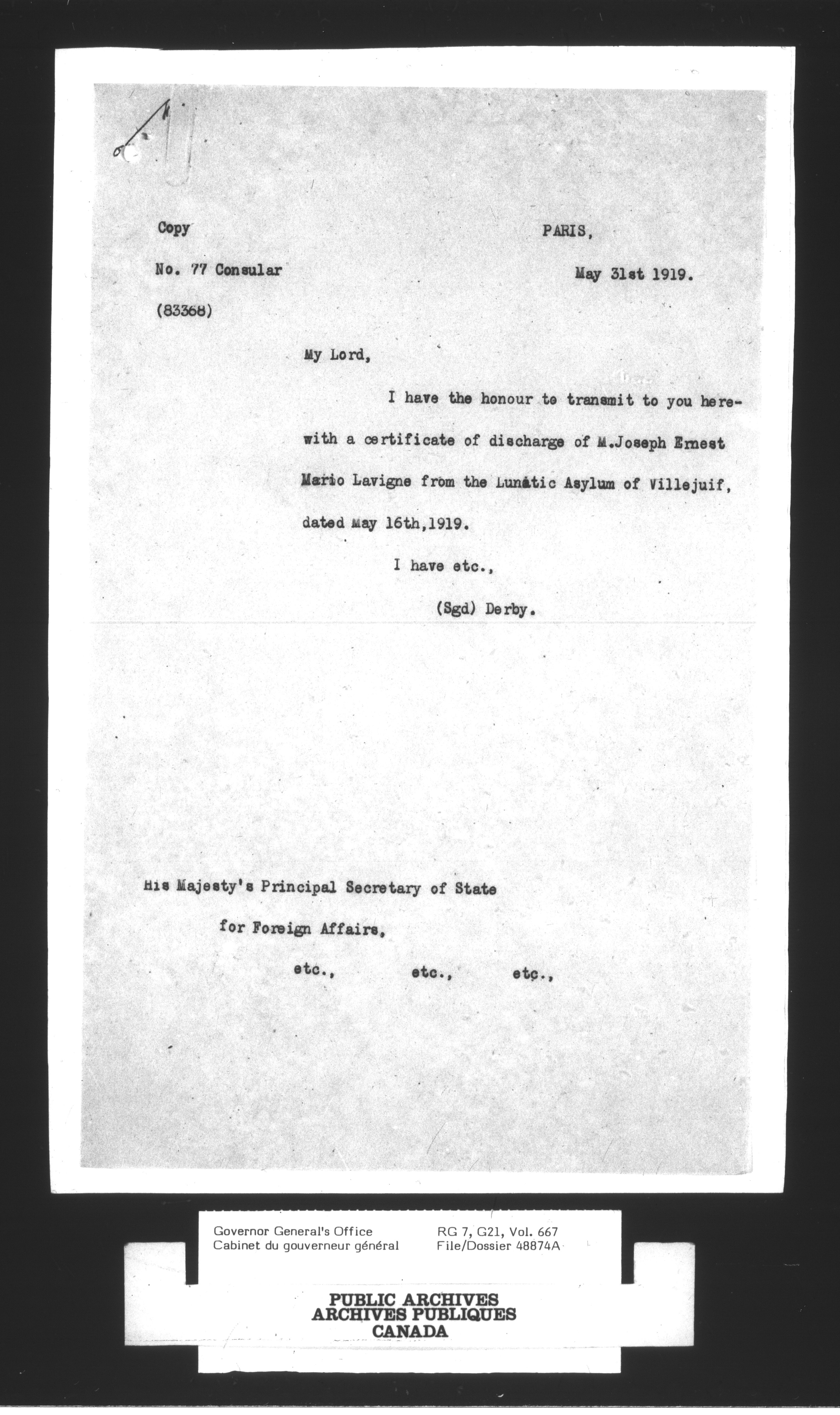Vol. 667, file 48874-669, file 54713, 1a