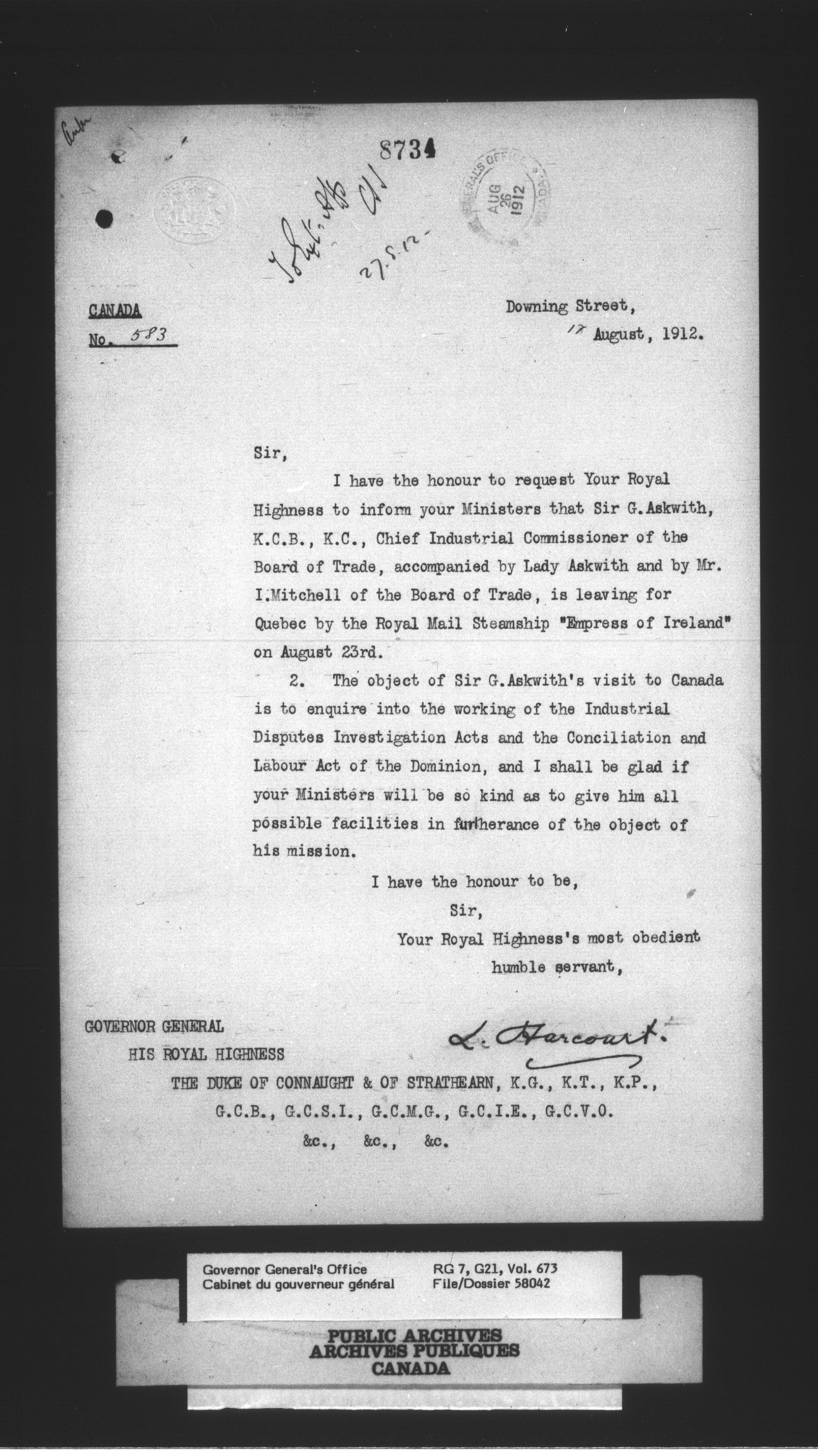 [Governor General] numbered files : T-2528
