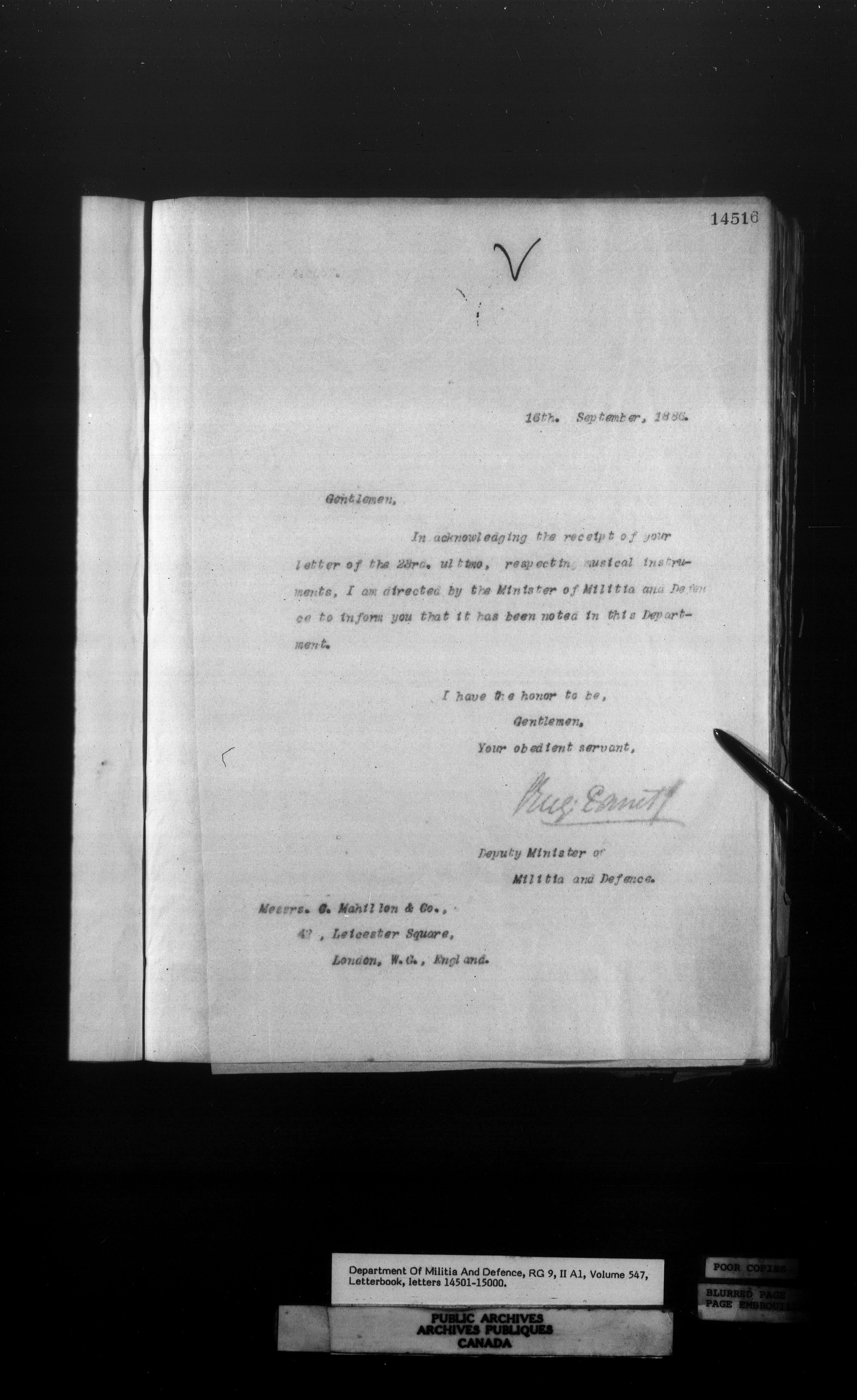 Letterbooks of the deputy minister and the adjutant general, 1868-1920 - 253