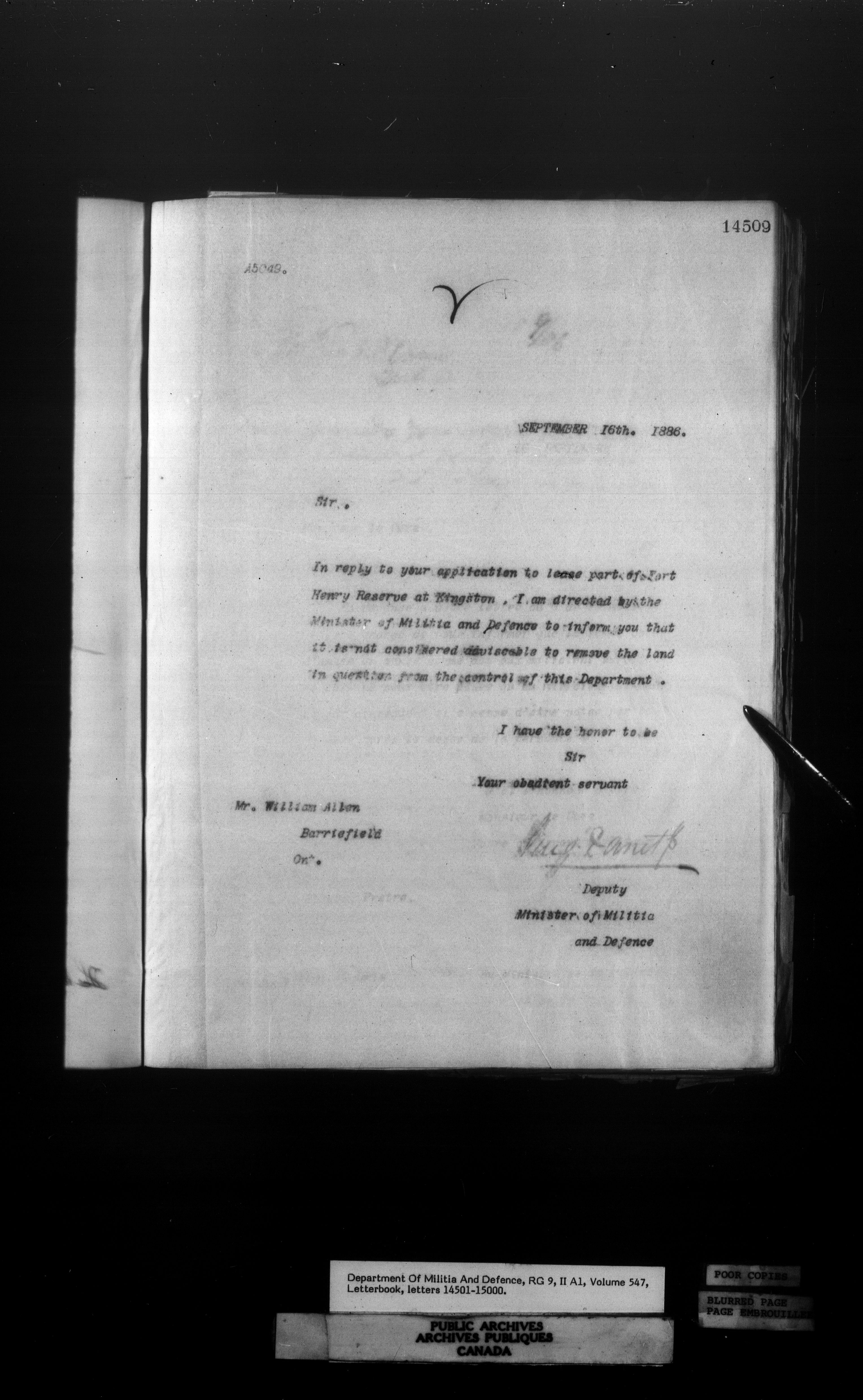 Letterbooks of the deputy minister and the adjutant general, 1868-1920 - 253