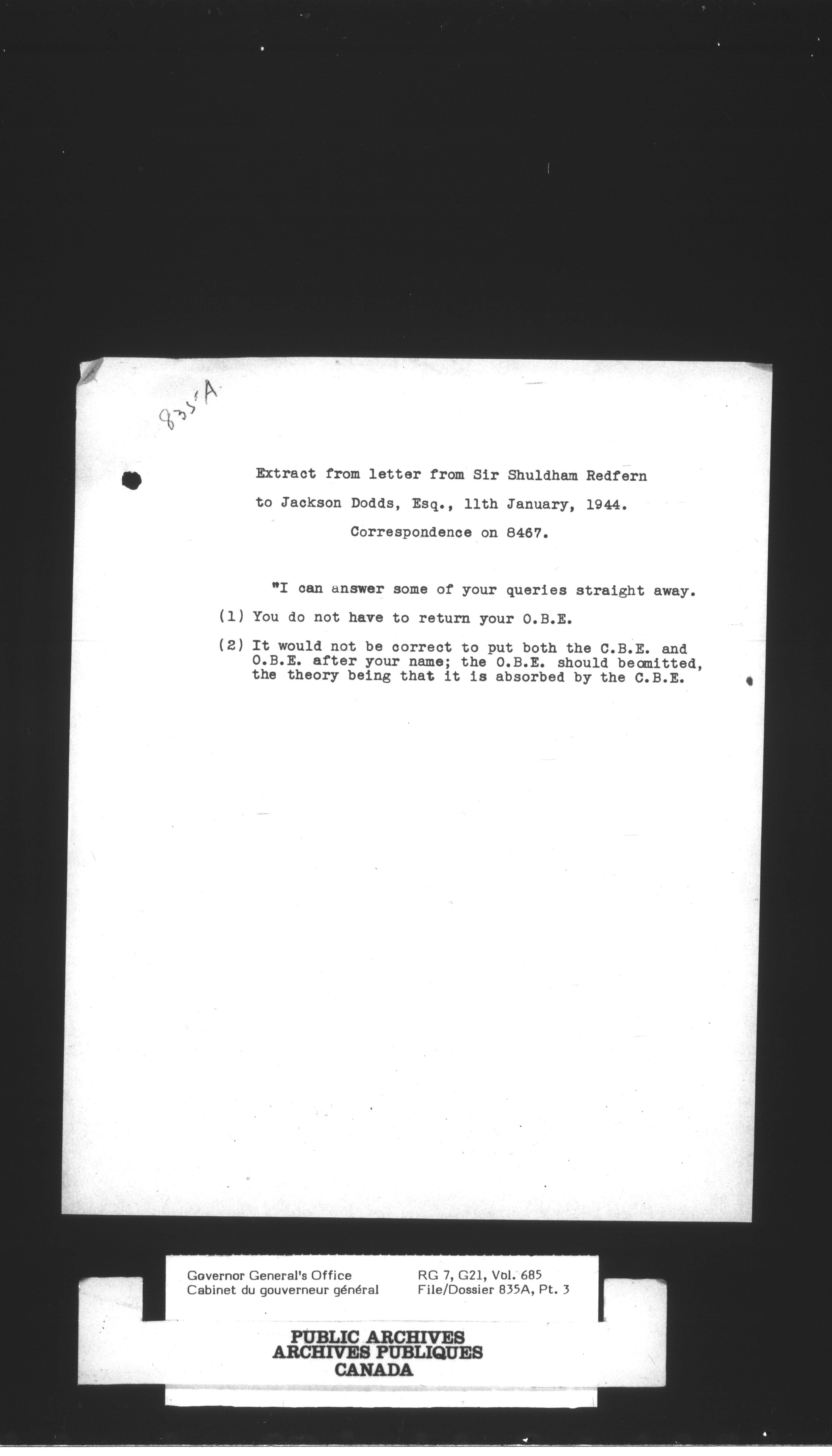 Vol. 683, file 835, Pt. 3-1-685, file 835A, Pt. 3