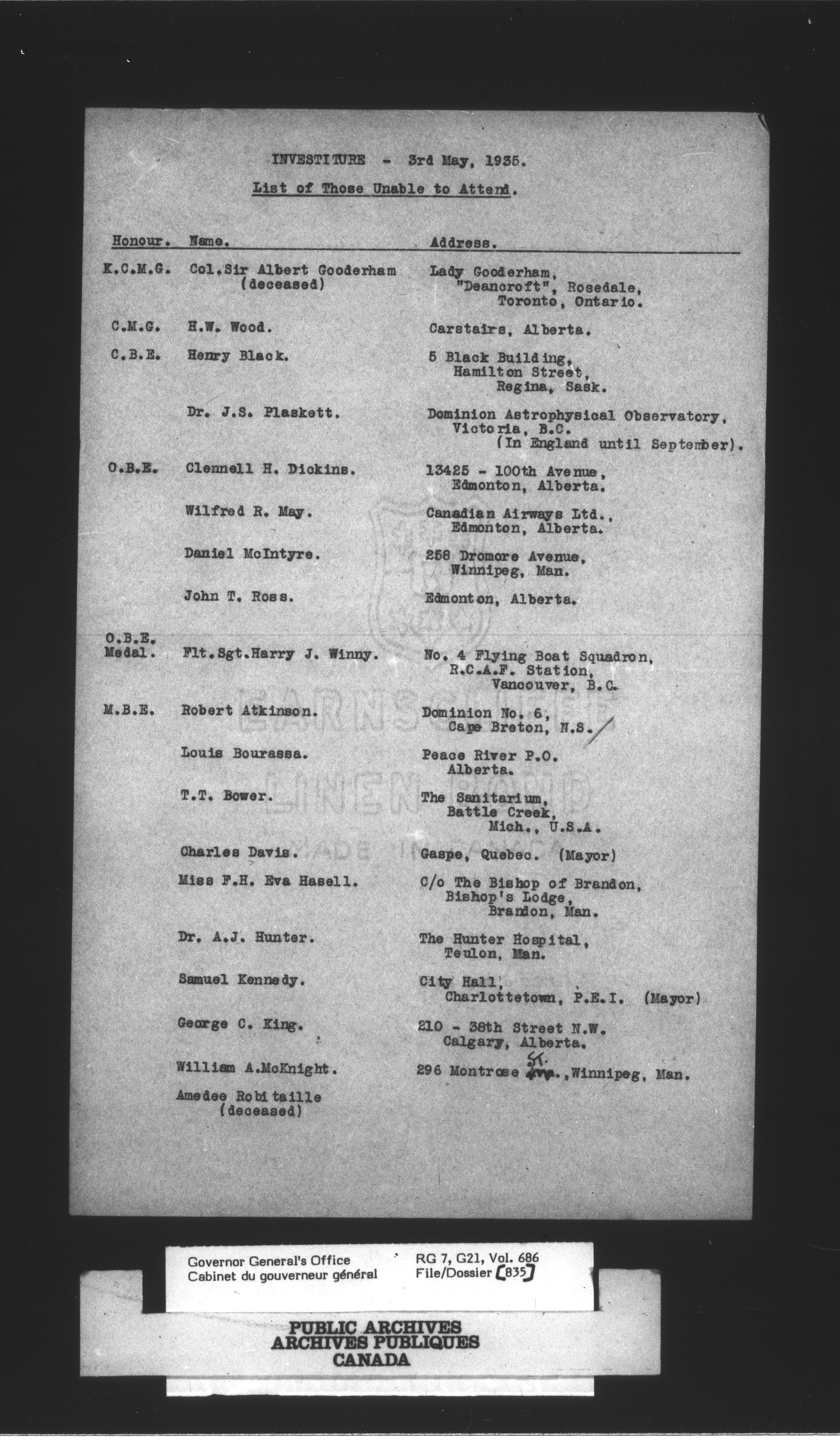 [Governor General] numbered files ; [Gouverneur-générale] dossiers numérotés - T-2534