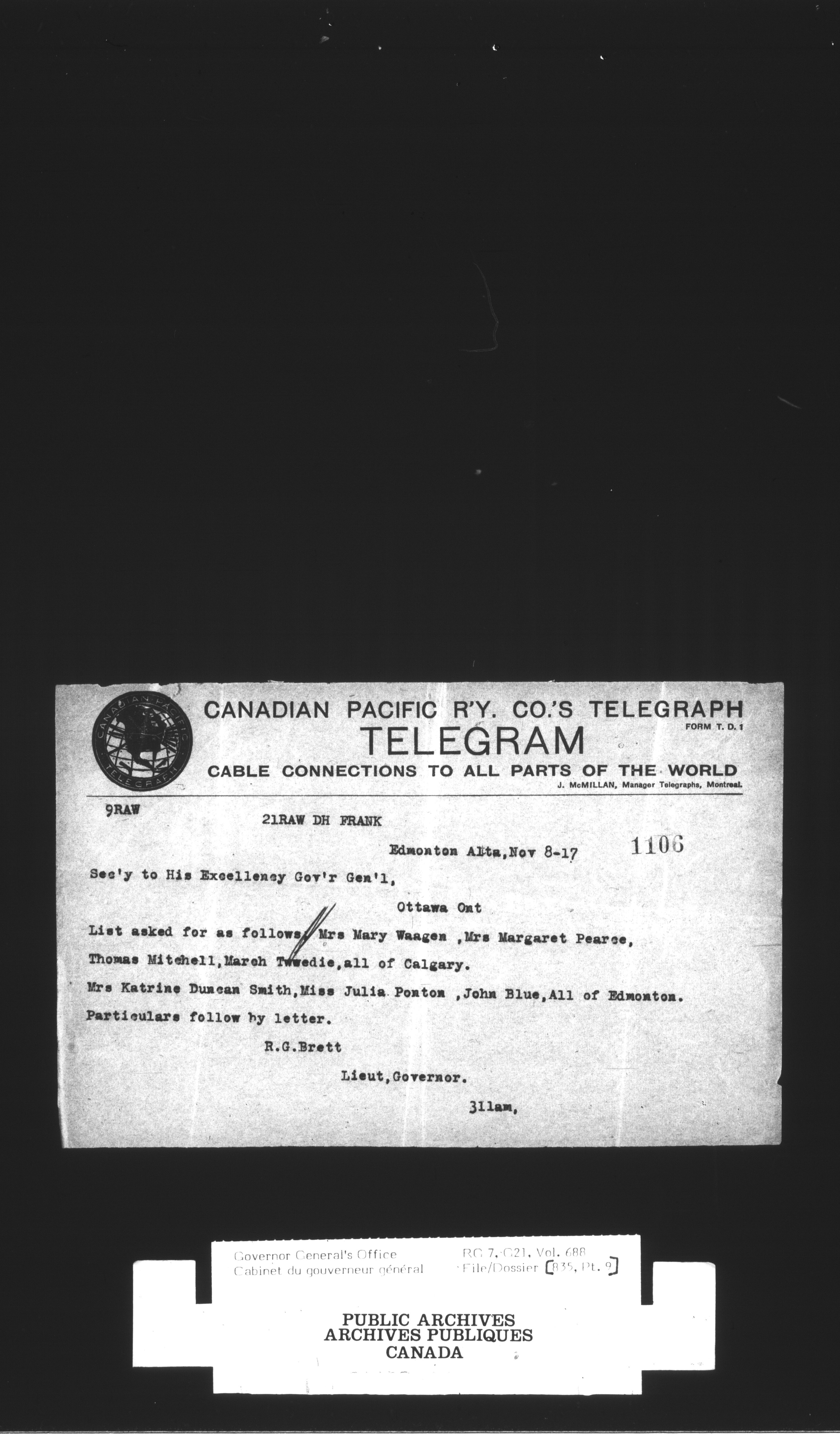 [Governor General] numbered files ; [Gouverneur-générale] dossiers numérotés - T-2535