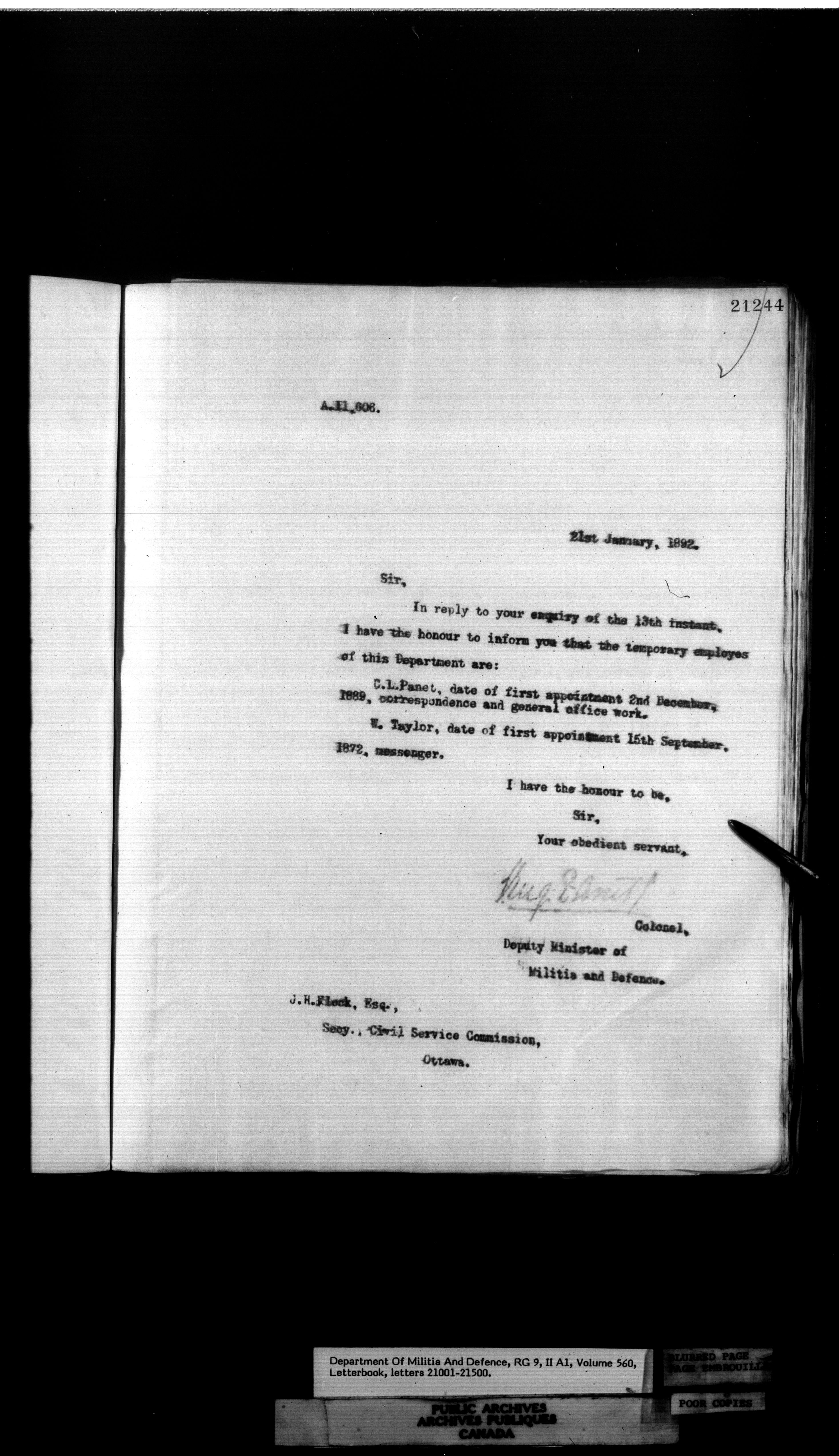 Letterbooks of the deputy minister and the adjutant general, 1868-1920 - 255