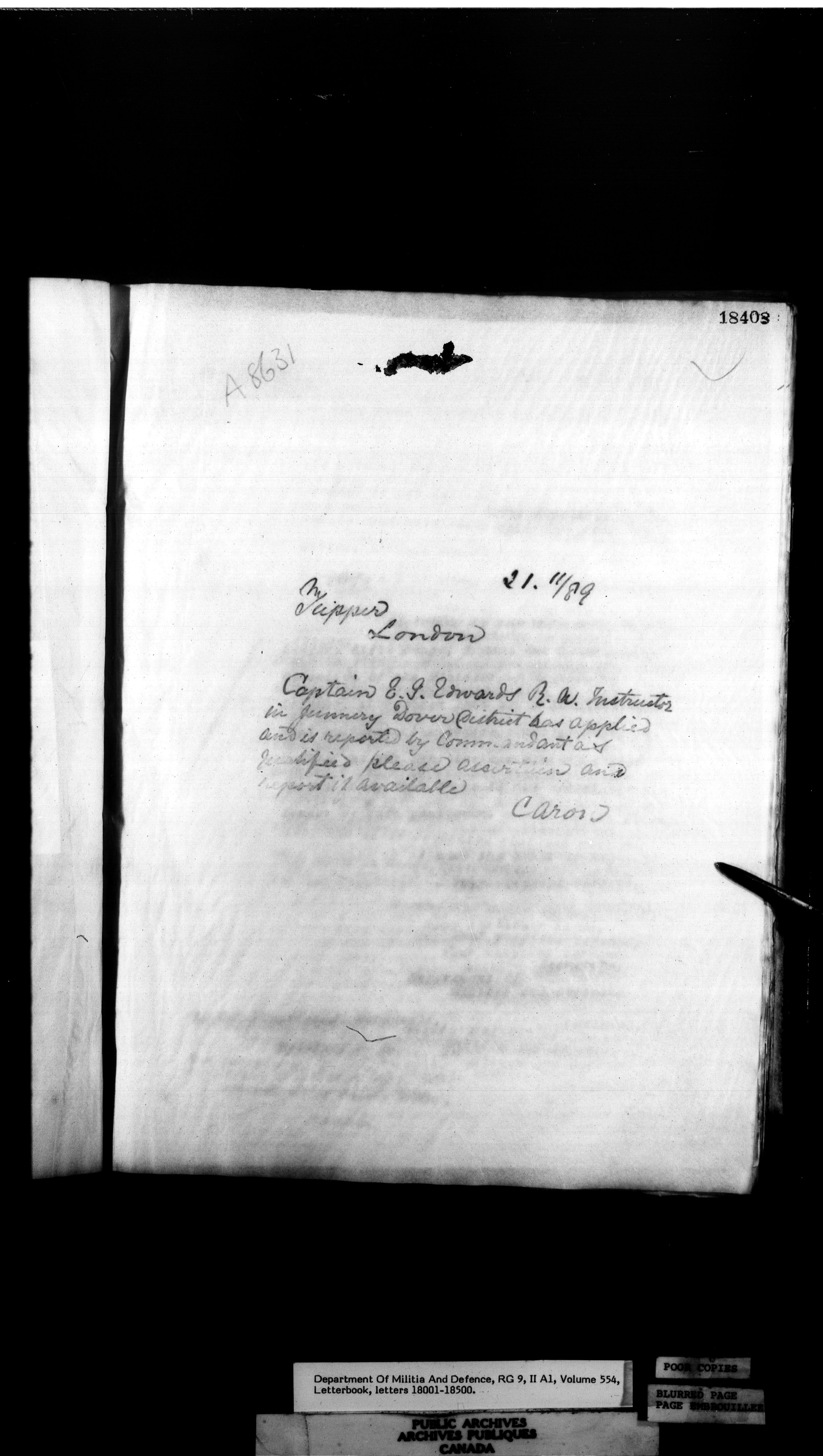 Letterbooks of the deputy minister and the adjutant general, 1868-1920 - 255