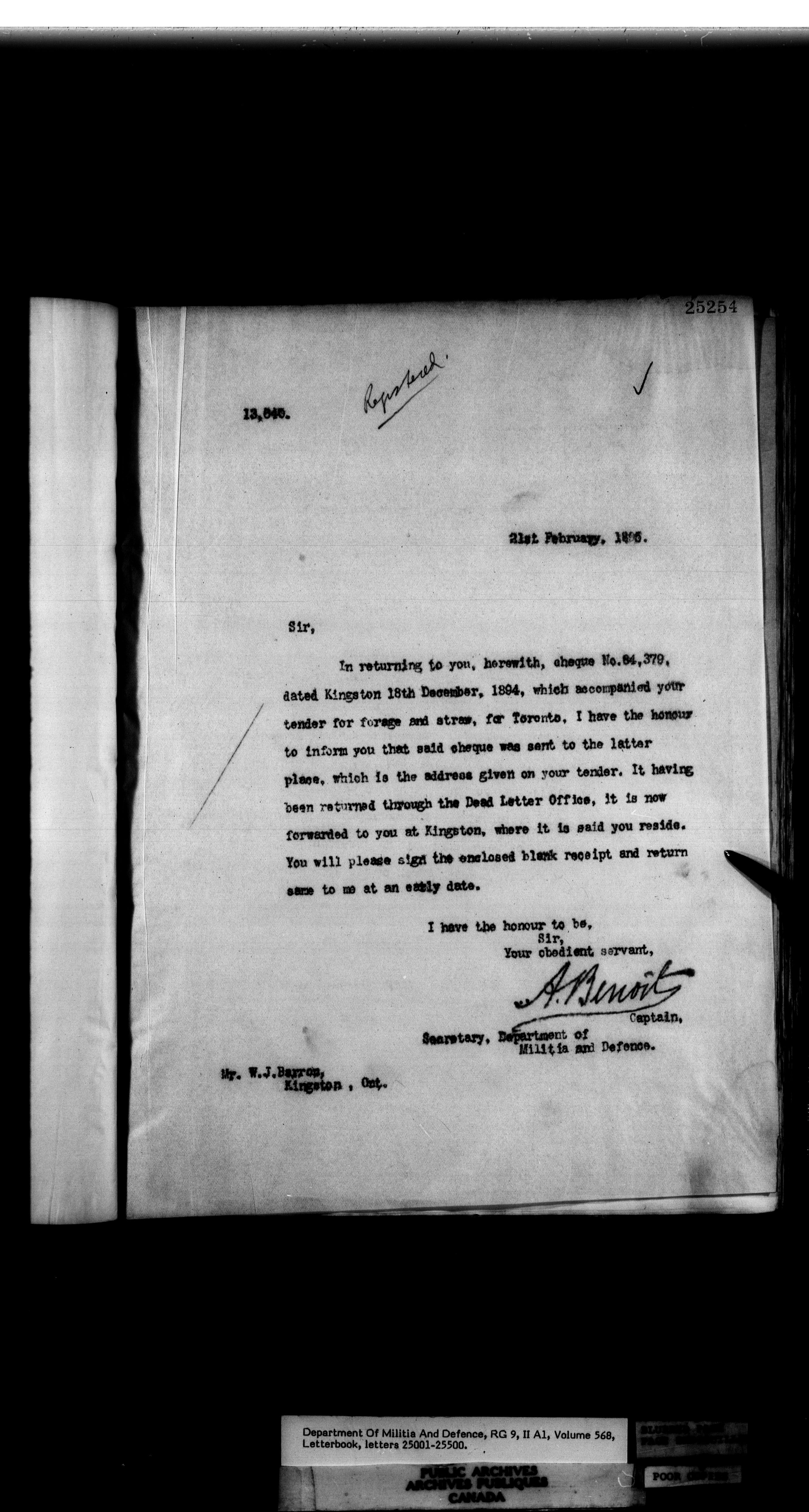 Letterbooks of the deputy minister and the adjutant general, 1868-1920 - 258