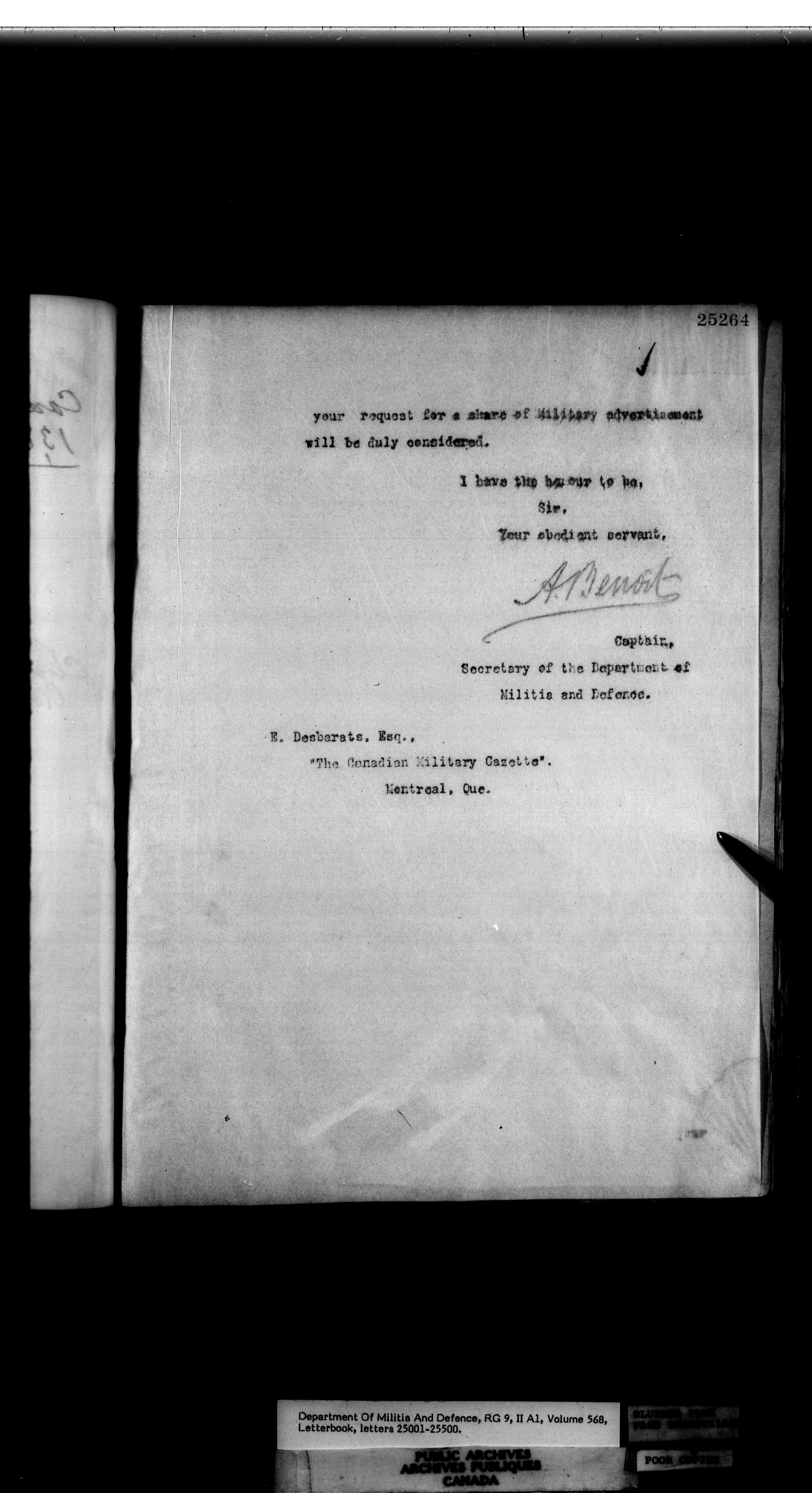 Letterbooks of the deputy minister and the adjutant general, 1868-1920 - 258