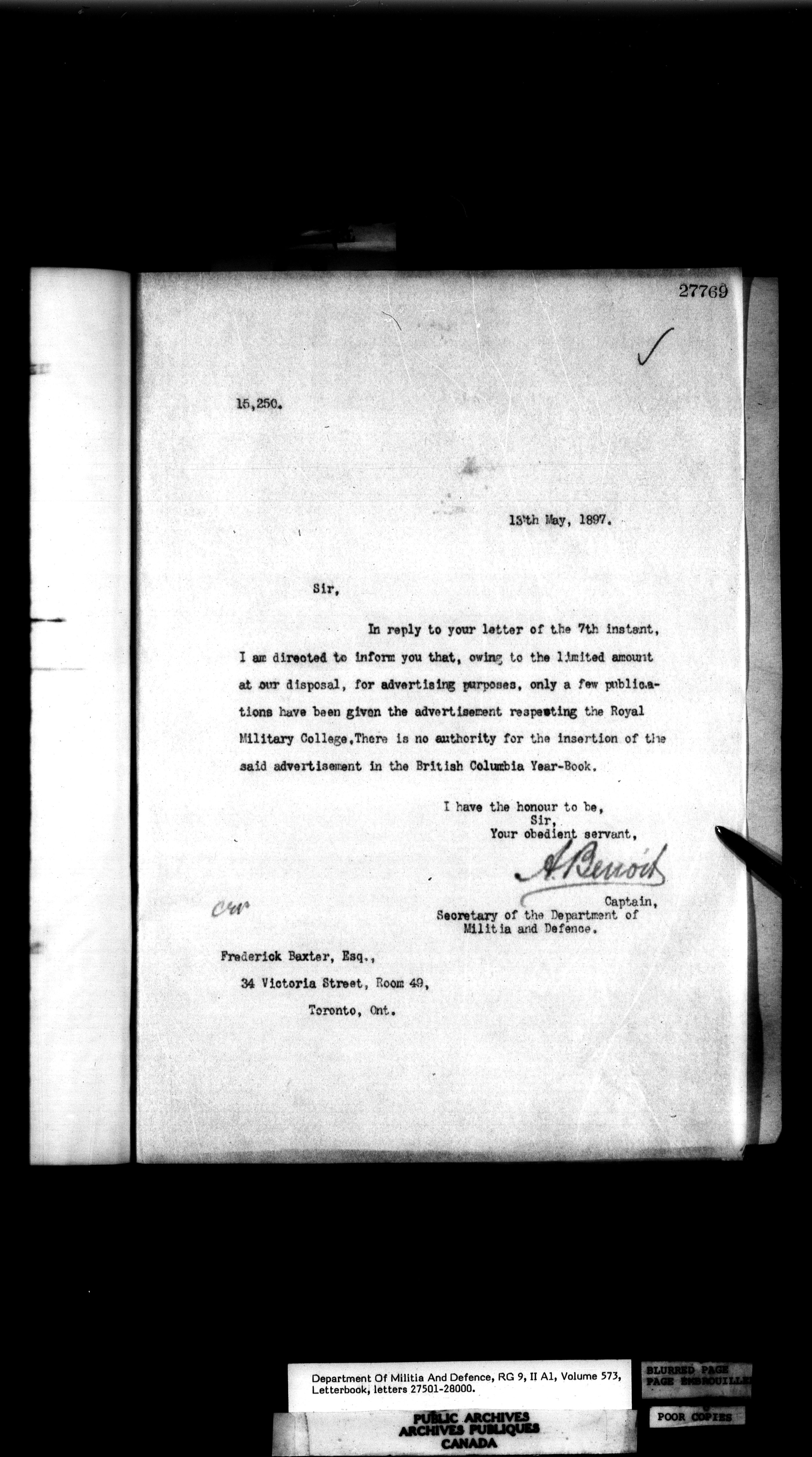 Letterbooks of the deputy minister and the adjutant general, 1868-1920 - 259