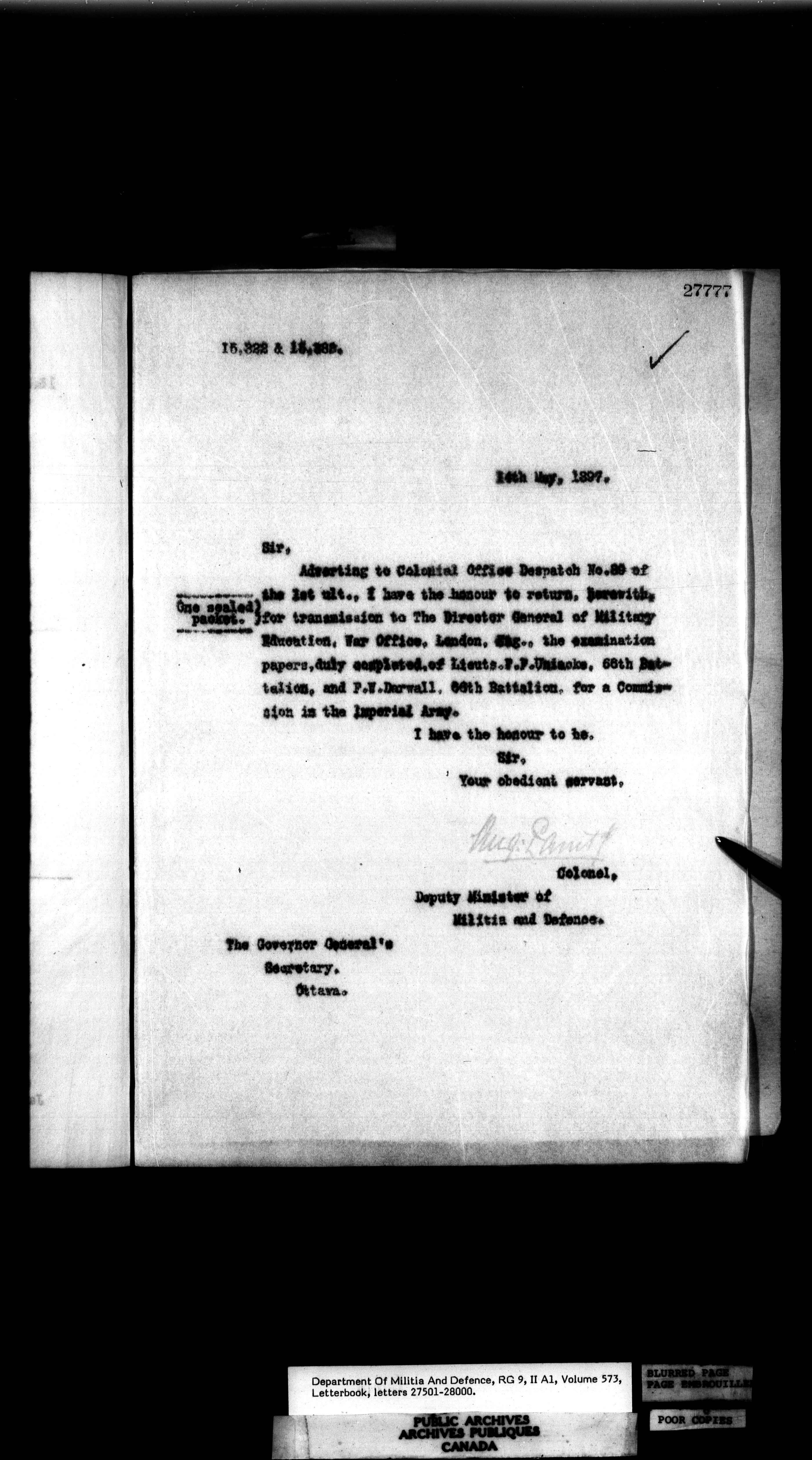 Letterbooks of the deputy minister and the adjutant general, 1868-1920 - 259