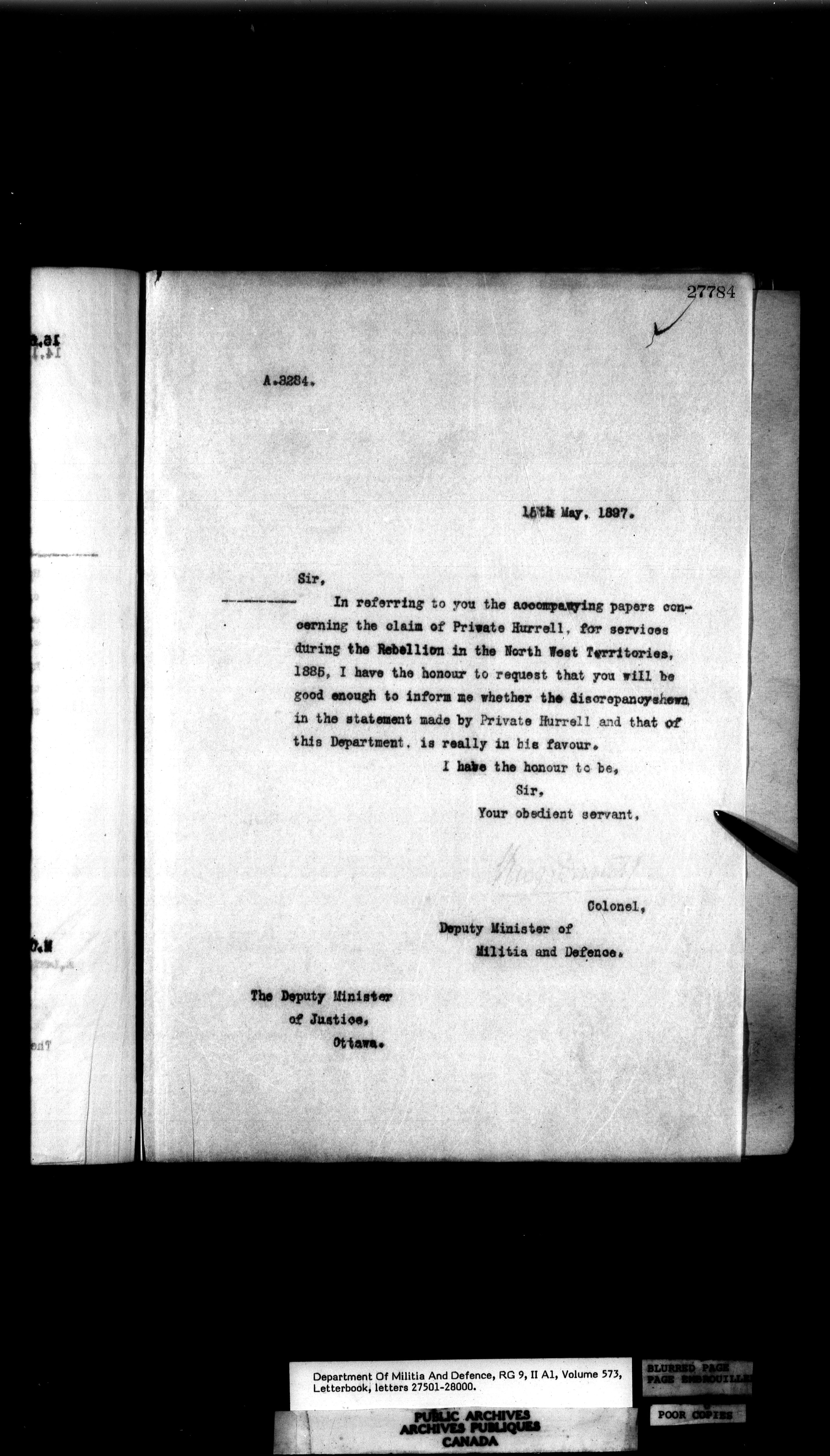Letterbooks of the deputy minister and the adjutant general, 1868-1920 - 259