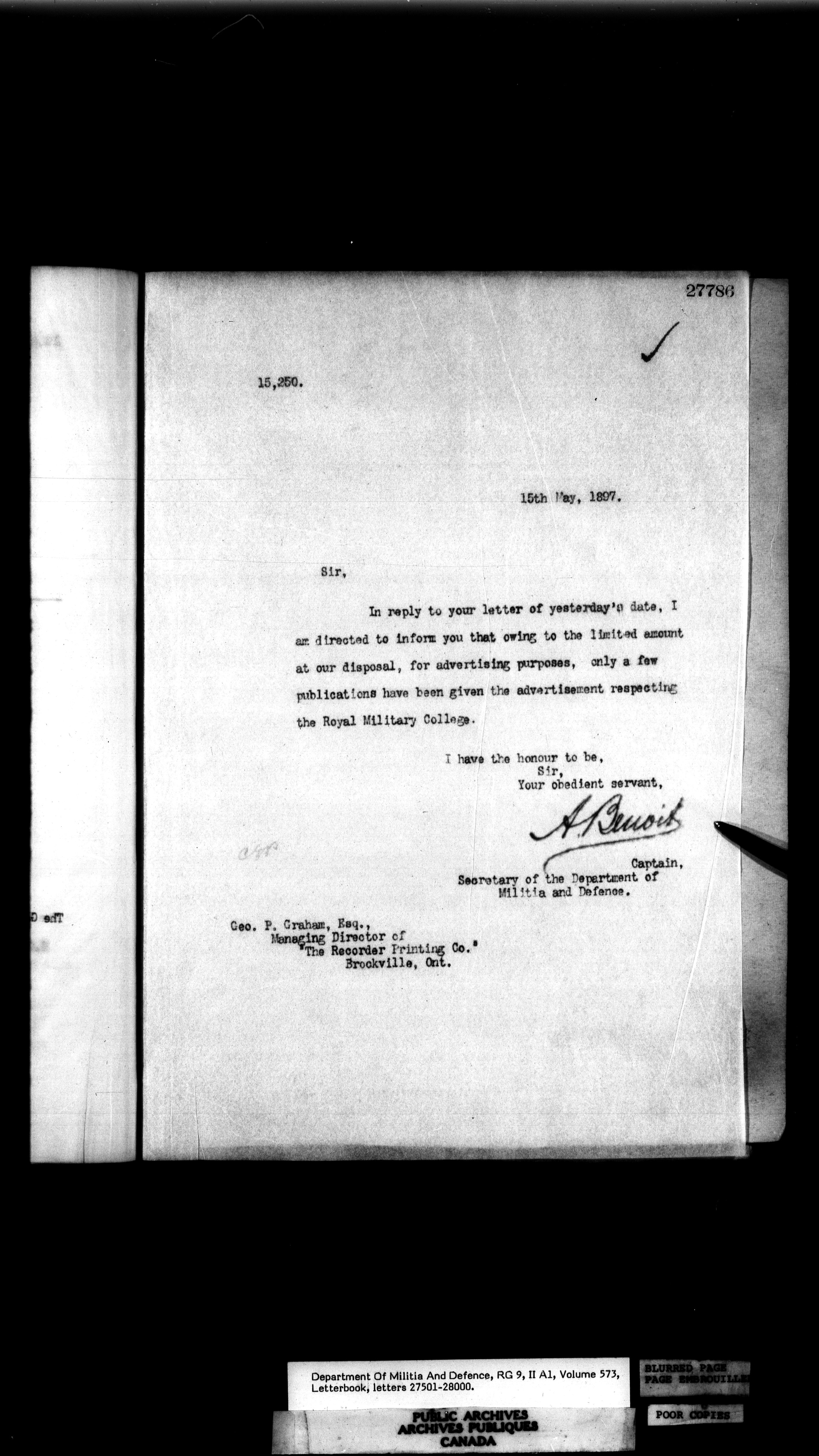 Letterbooks of the deputy minister and the adjutant general, 1868-1920 - 259