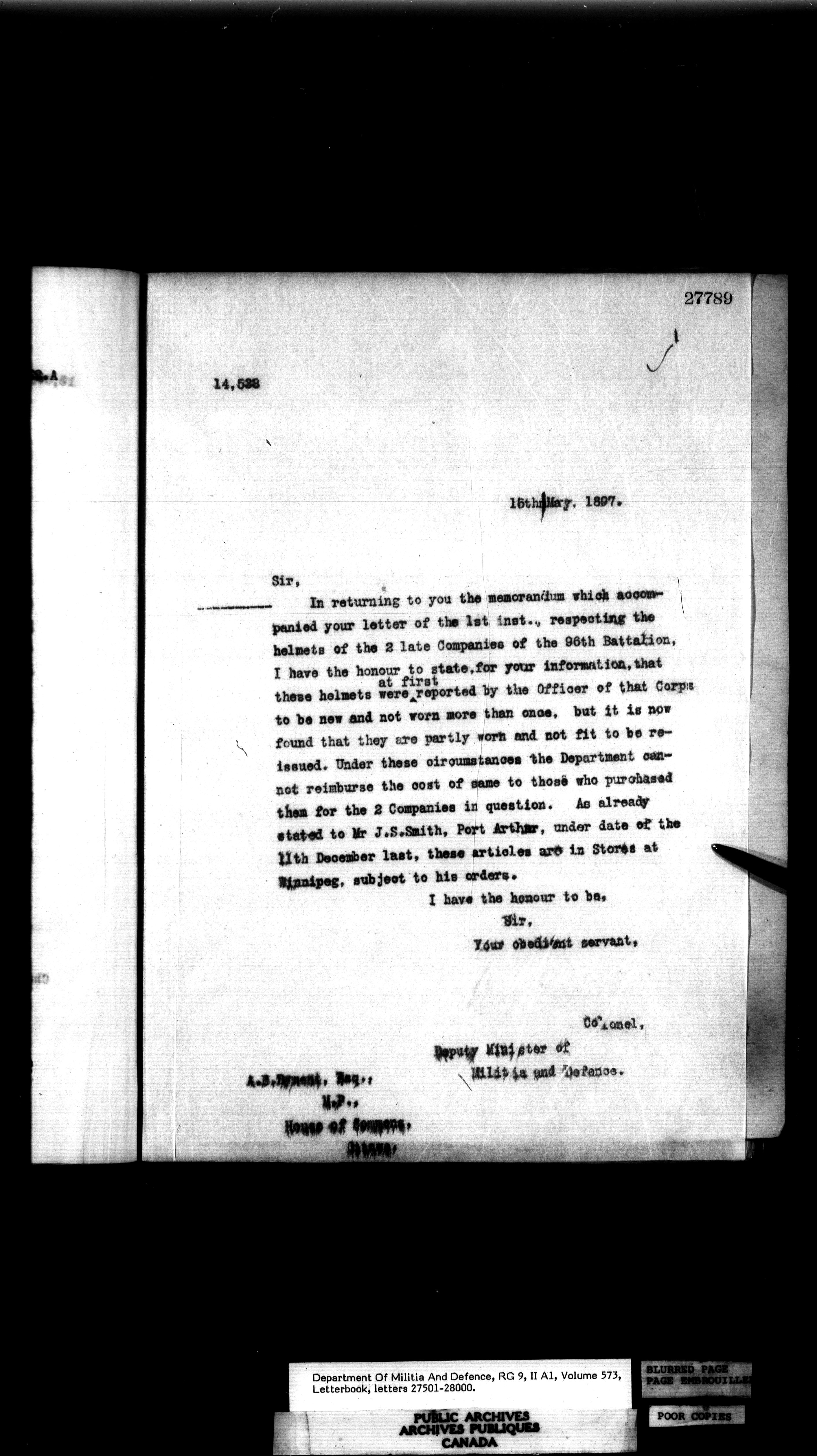 Letterbooks of the deputy minister and the adjutant general, 1868-1920 - 259