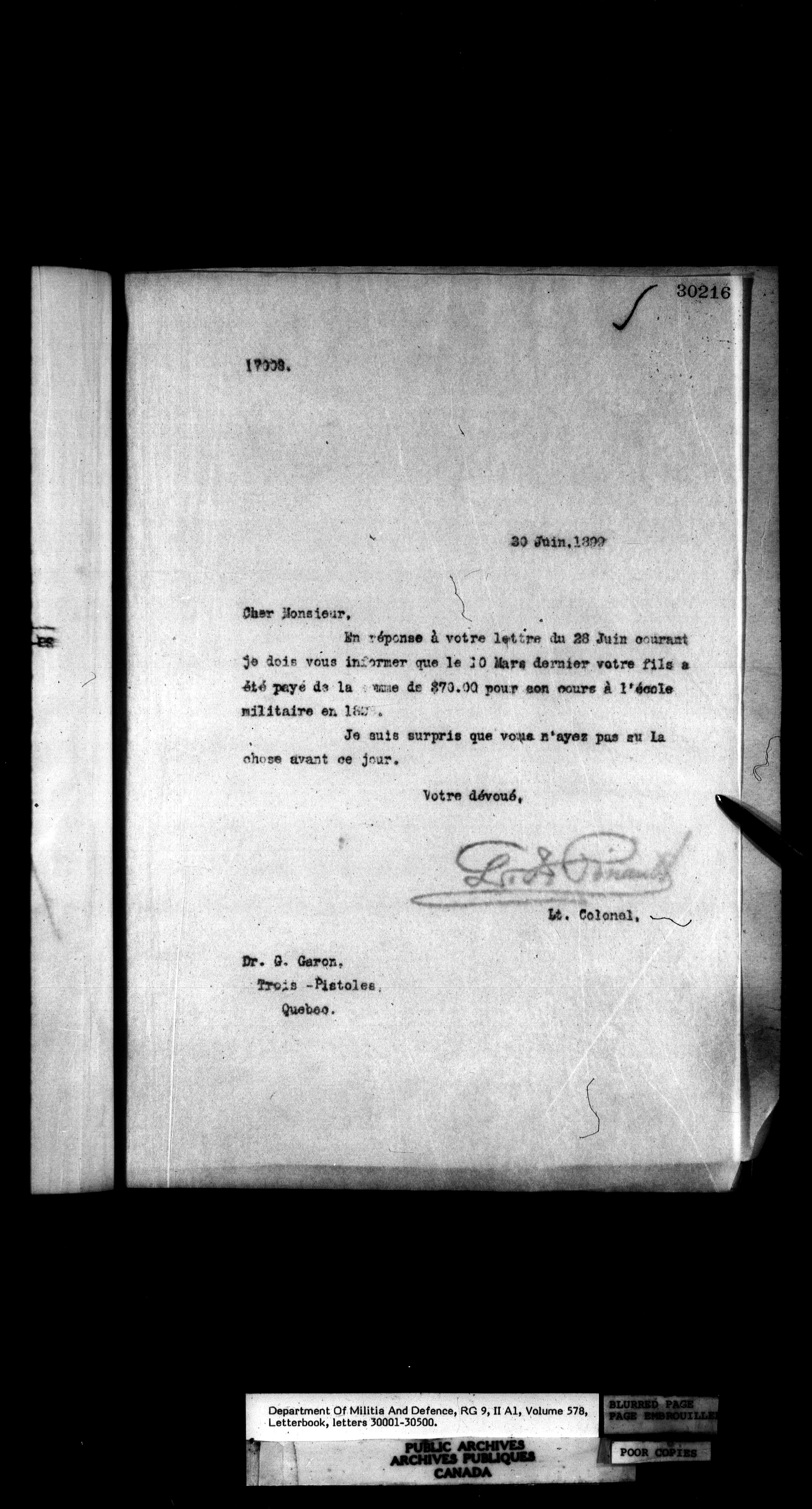 Letterbooks of the deputy minister and the adjutant general, 1868-1920 - 260