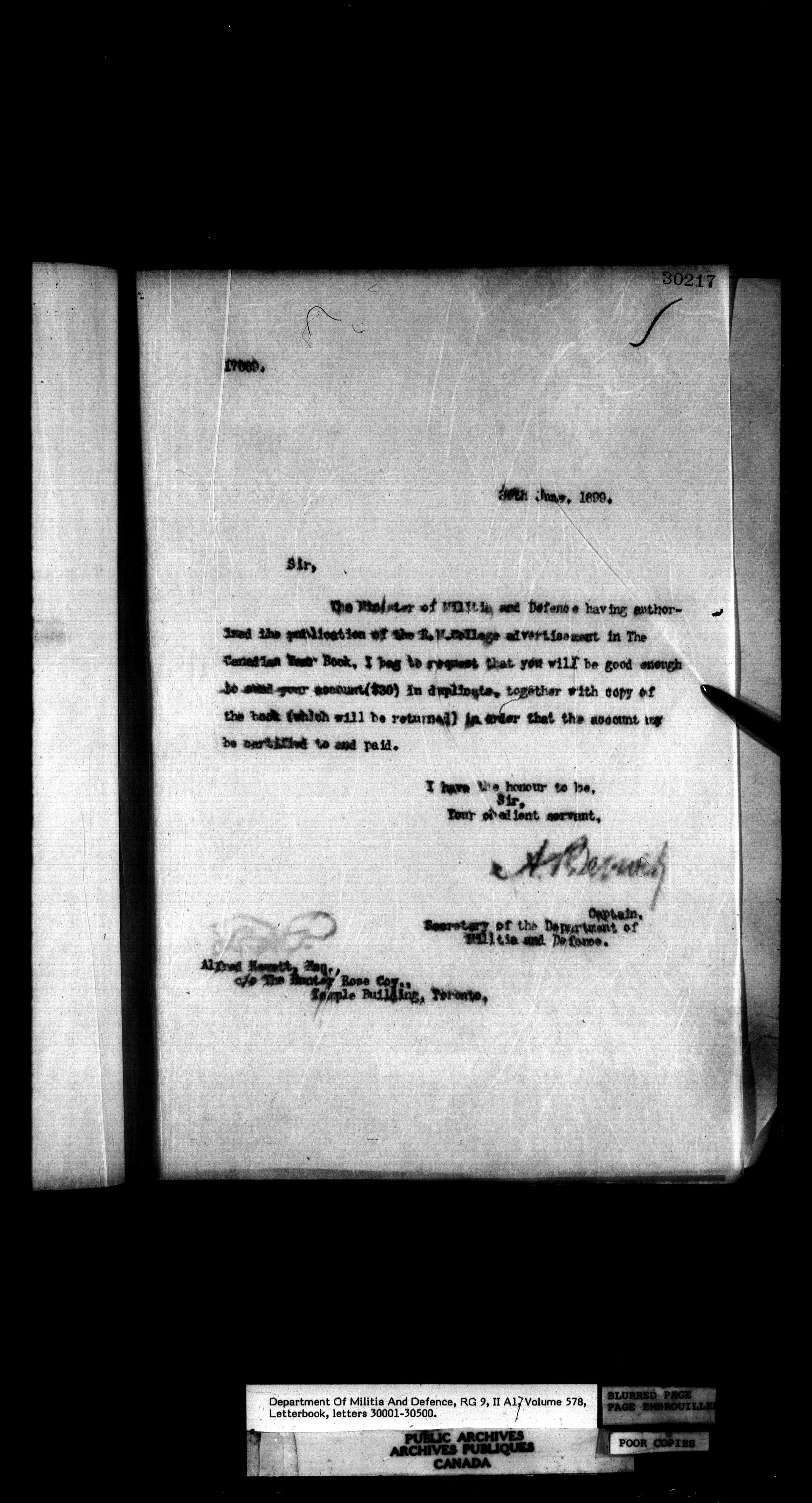 Letterbooks of the deputy minister and the adjutant general, 1868-1920 - 260
