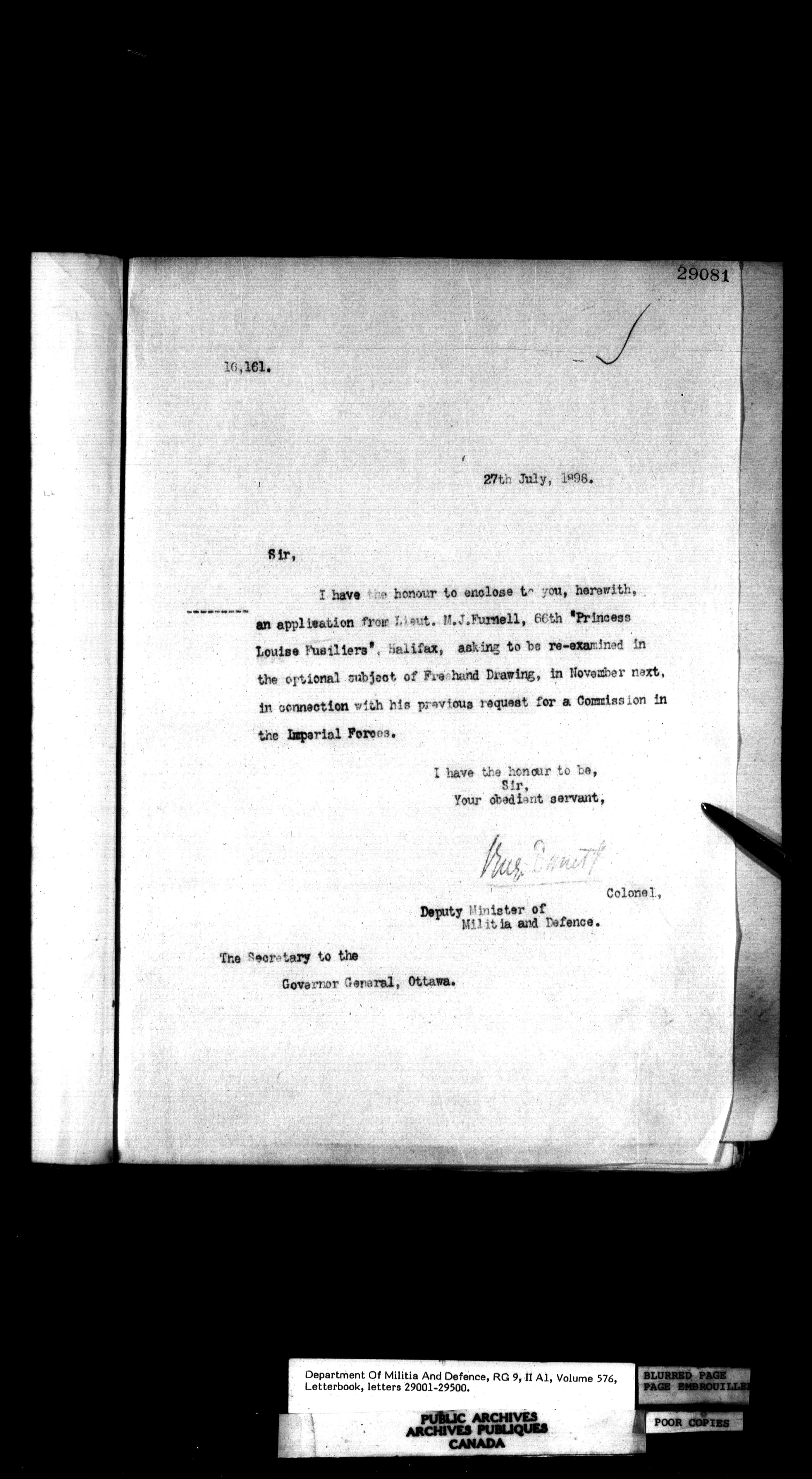 Letterbooks of the deputy minister and the adjutant general, 1868-1920 - 260