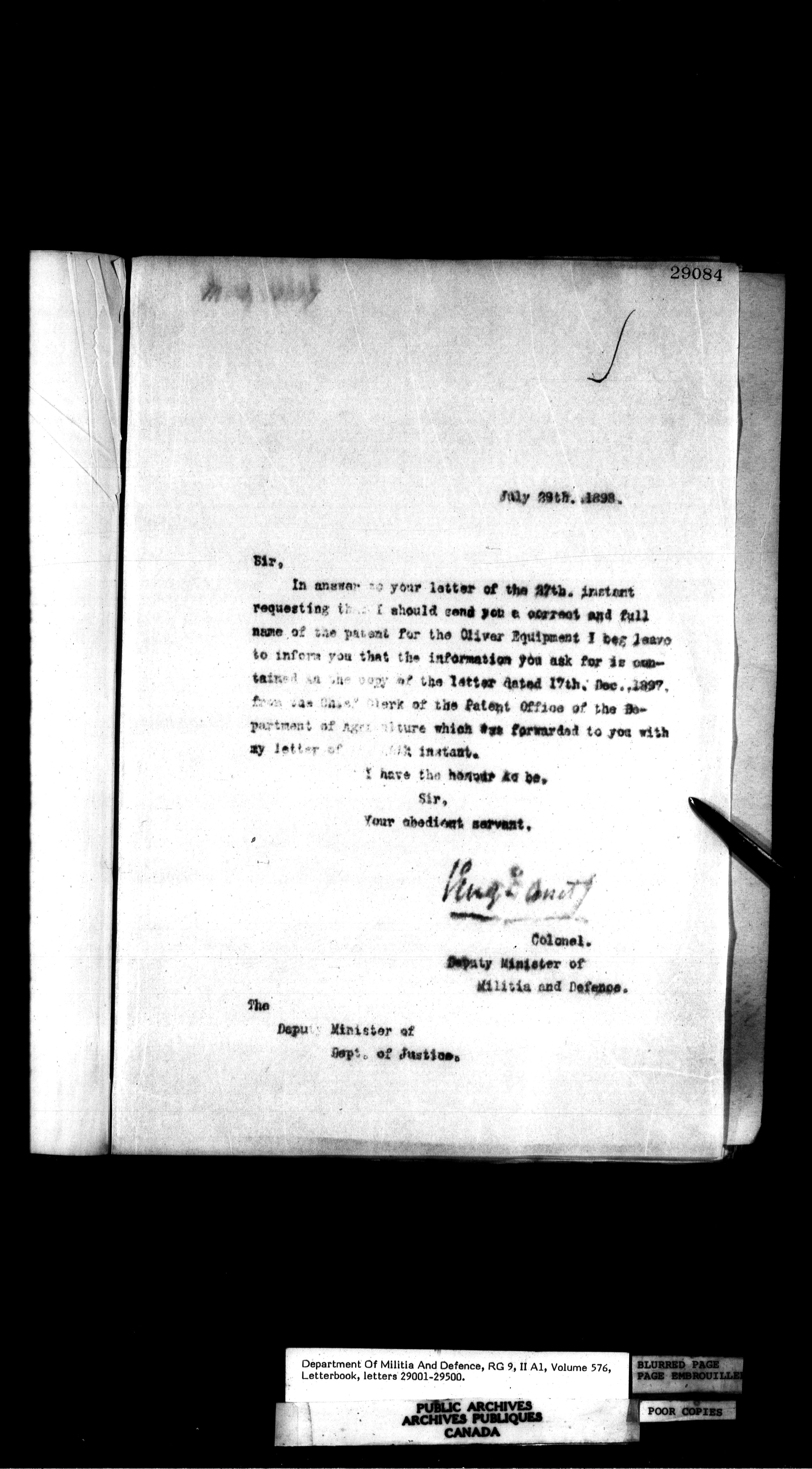 Letterbooks of the deputy minister and the adjutant general, 1868-1920 - 260