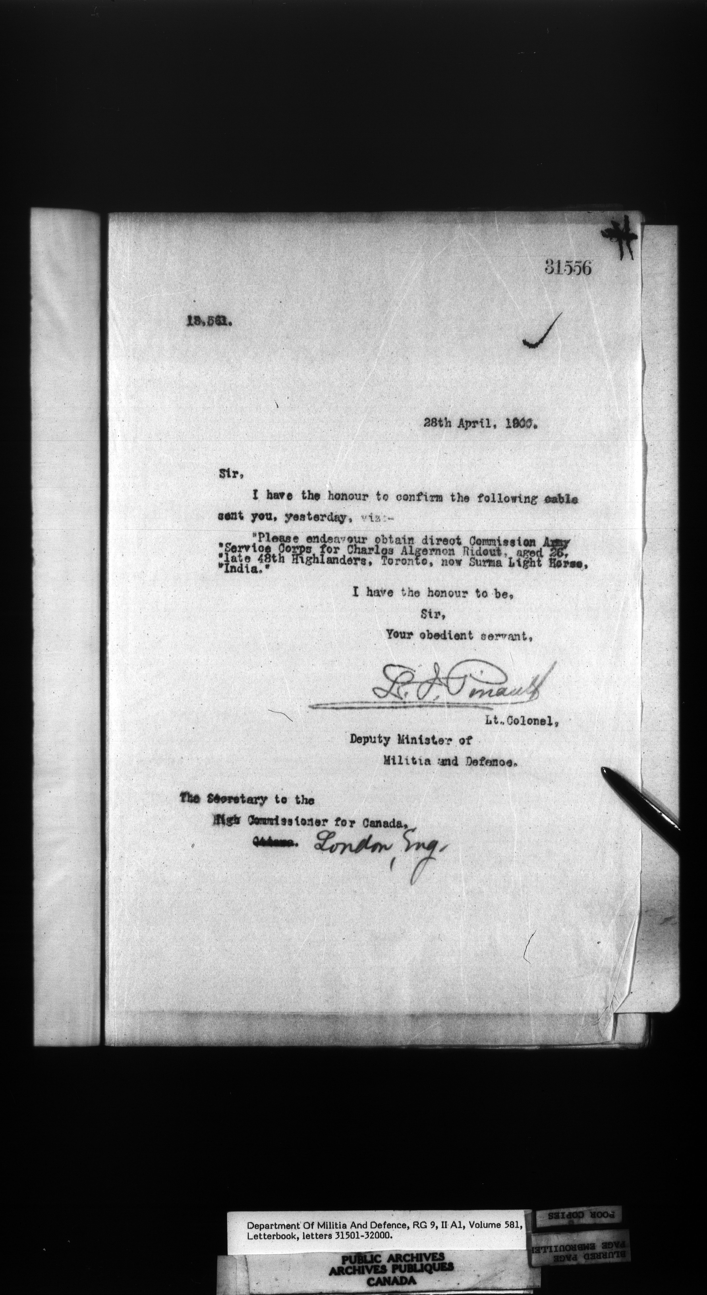 Letterbooks of the deputy minister and the adjutant general, 1868-1920 - 262