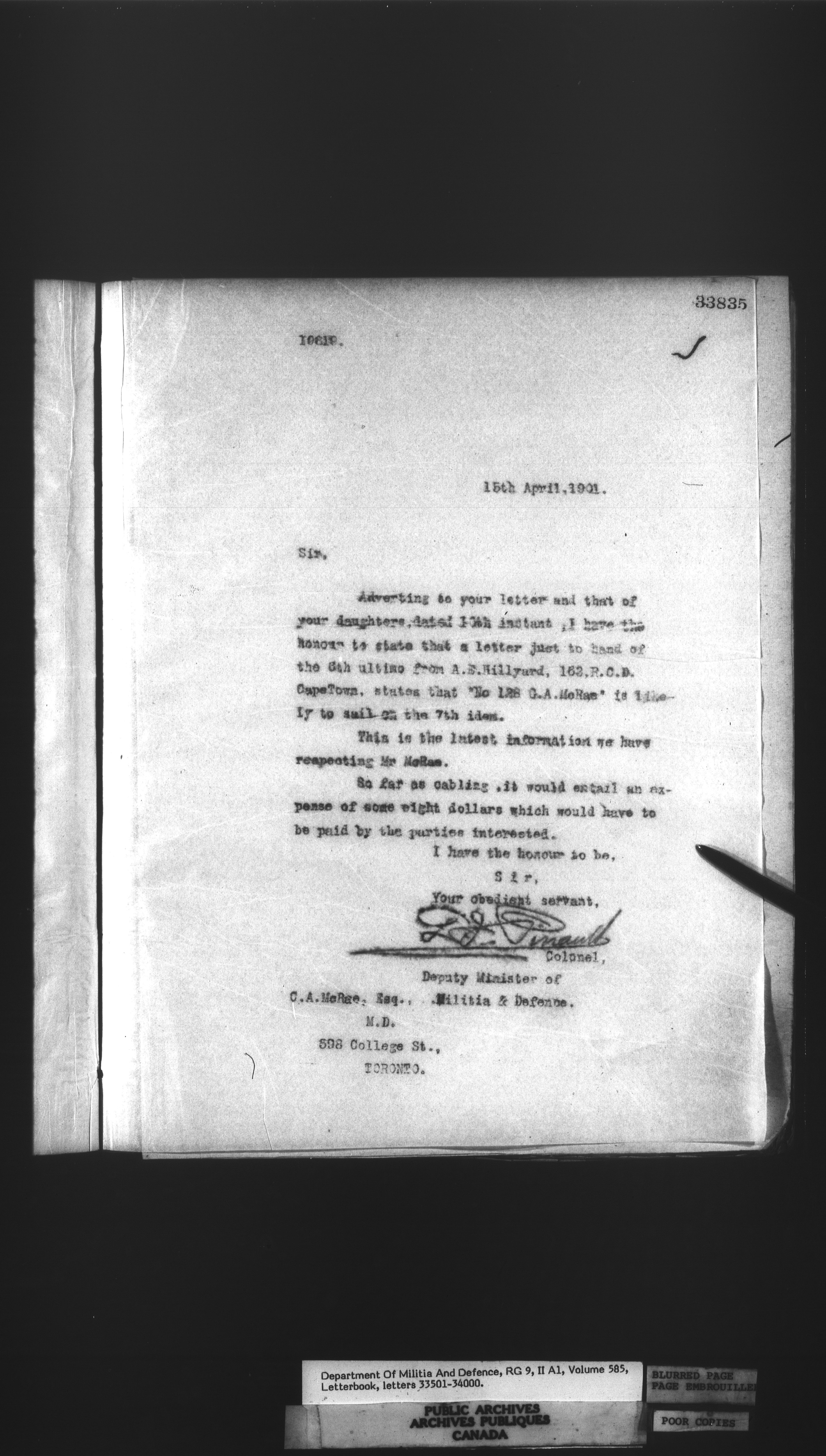 Letterbooks of the deputy minister and the adjutant general, 1868-1920 - 263