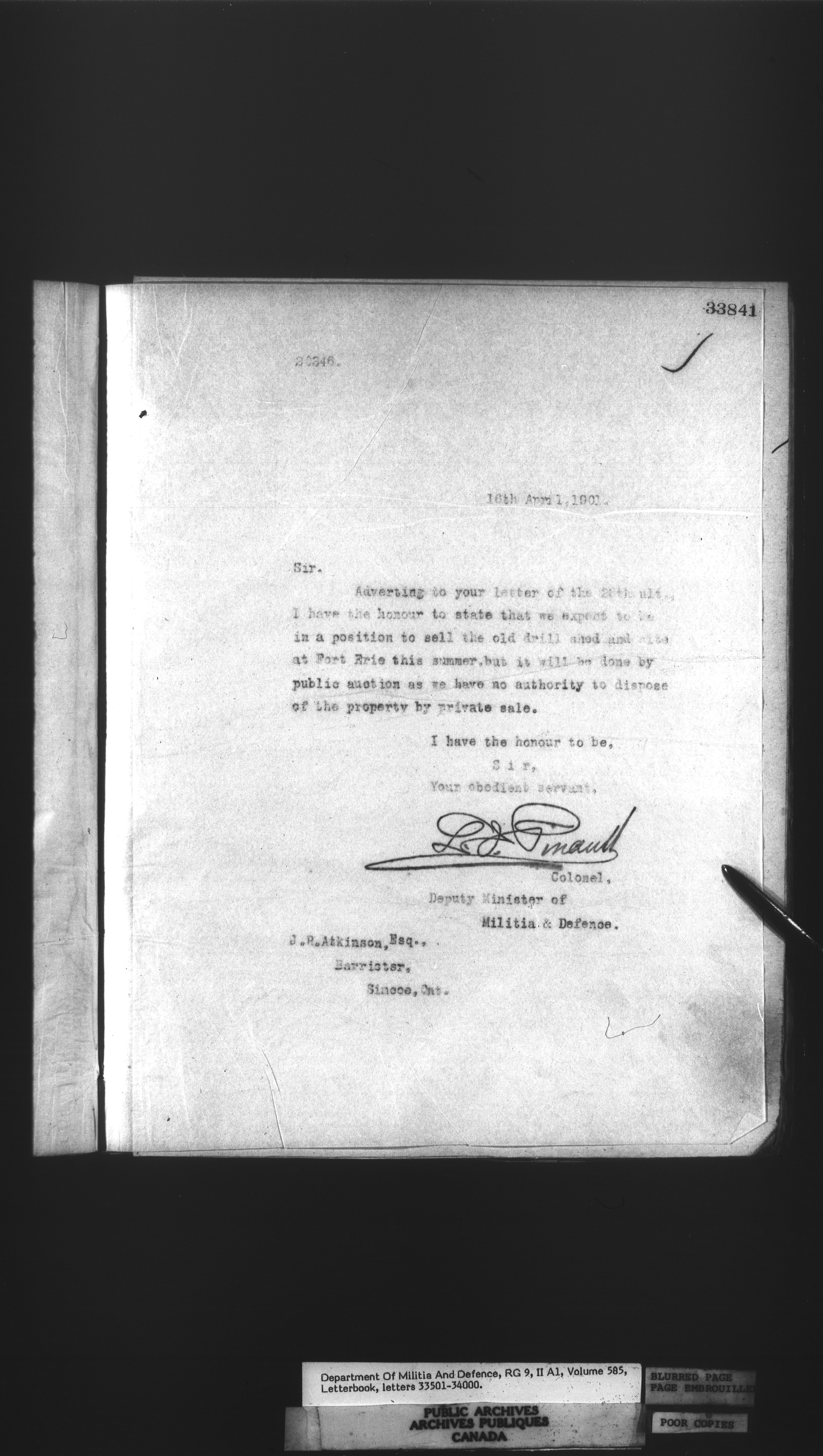 Letterbooks of the deputy minister and the adjutant general, 1868-1920 - 263