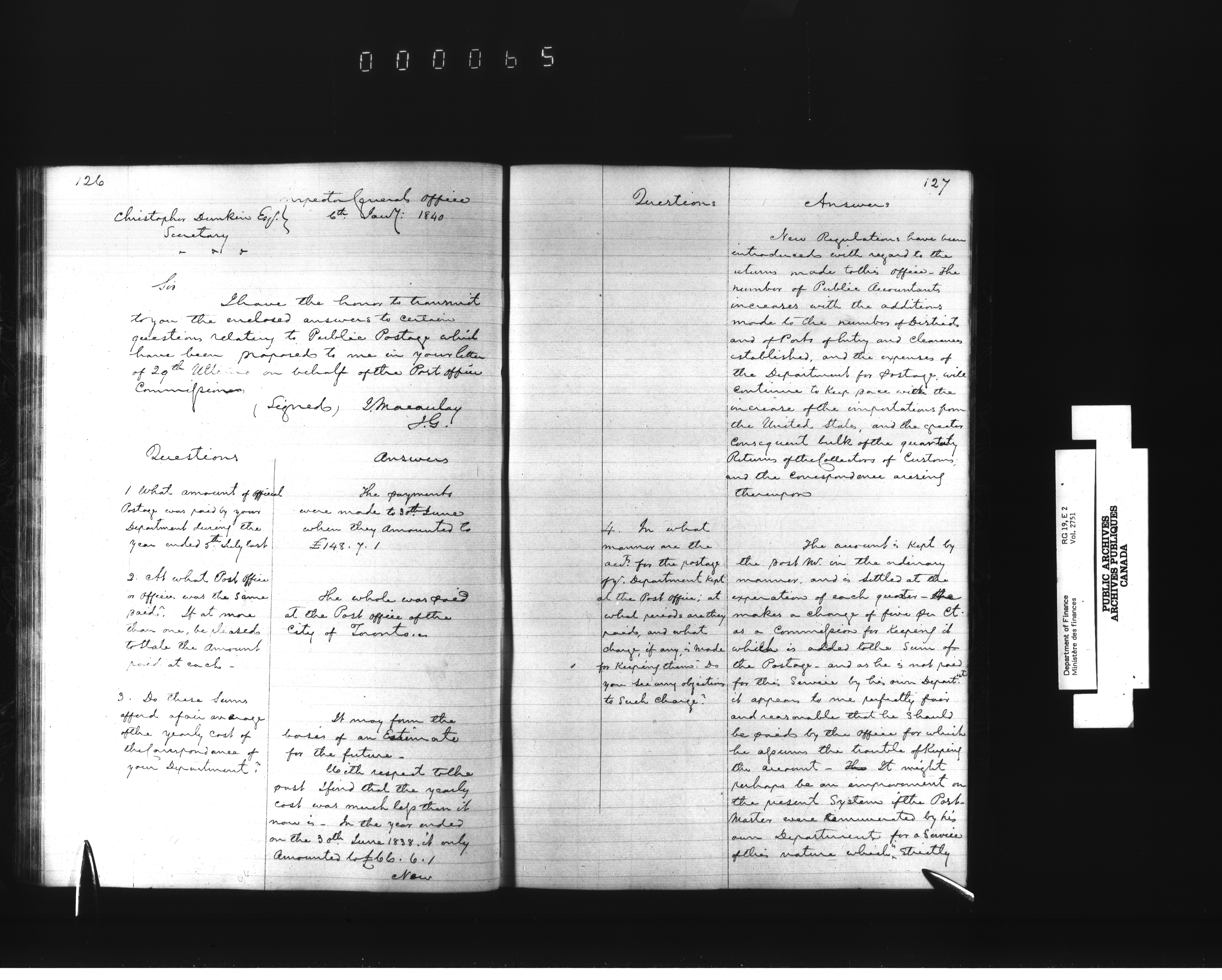 Outgoing correspondence of the office of the Deputy-Inspector General and Deputy Minister of Finance - 2631