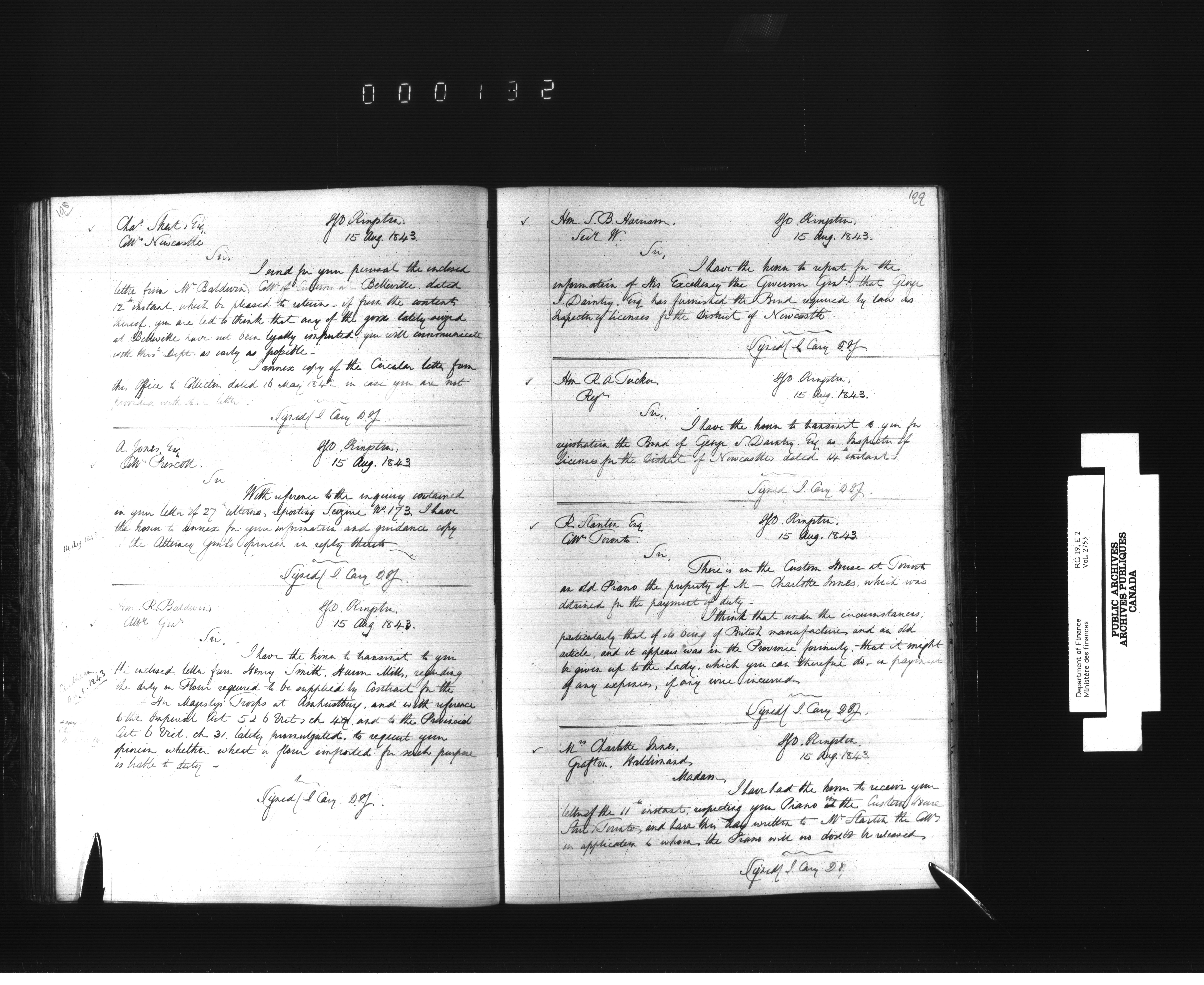 Outgoing correspondence of the office of the Deputy-Inspector General and Deputy Minister of Finance - 2632