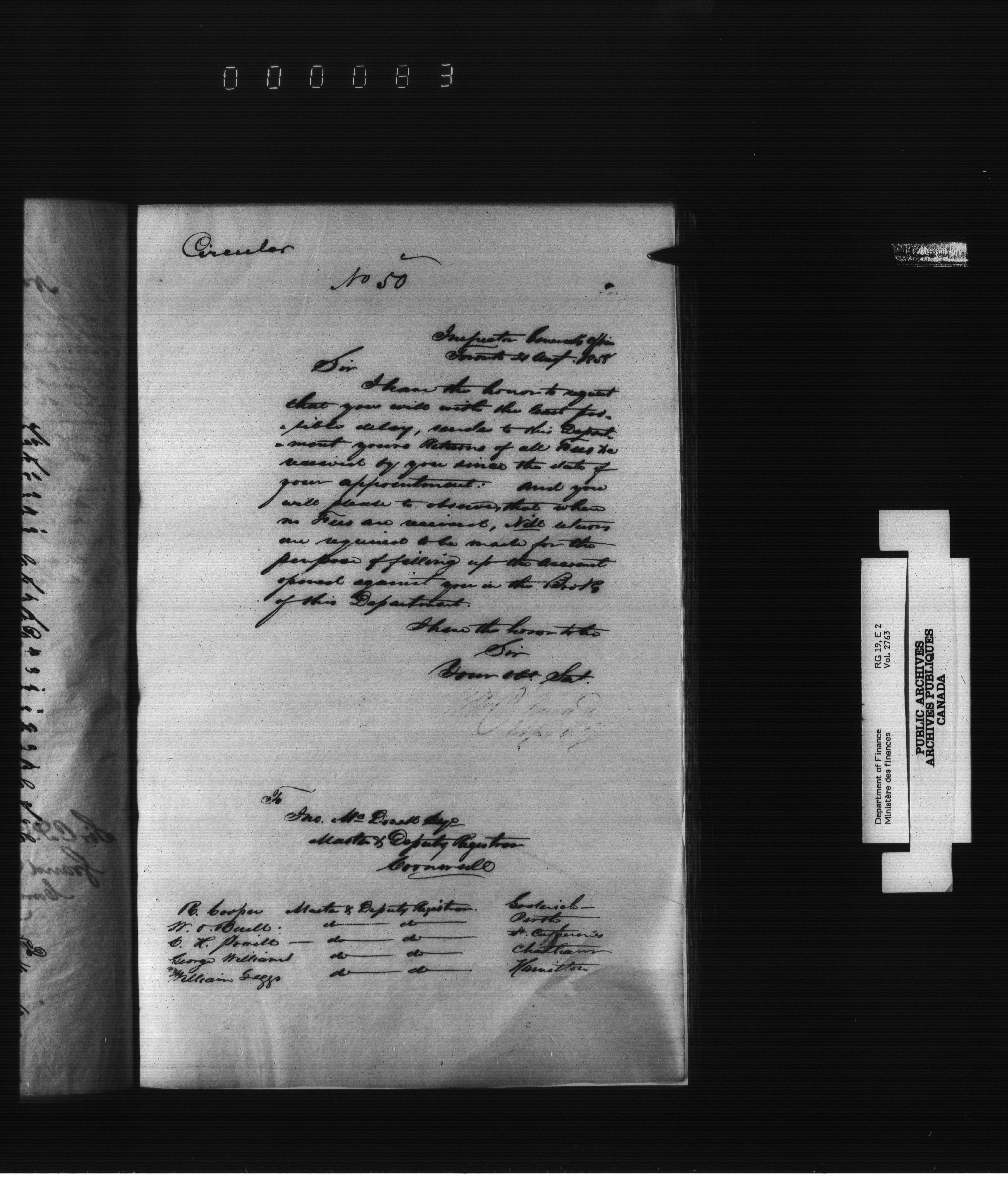 Outgoing correspondence of the office of the Deputy-Inspector General and Deputy Minister of Finance - 2638