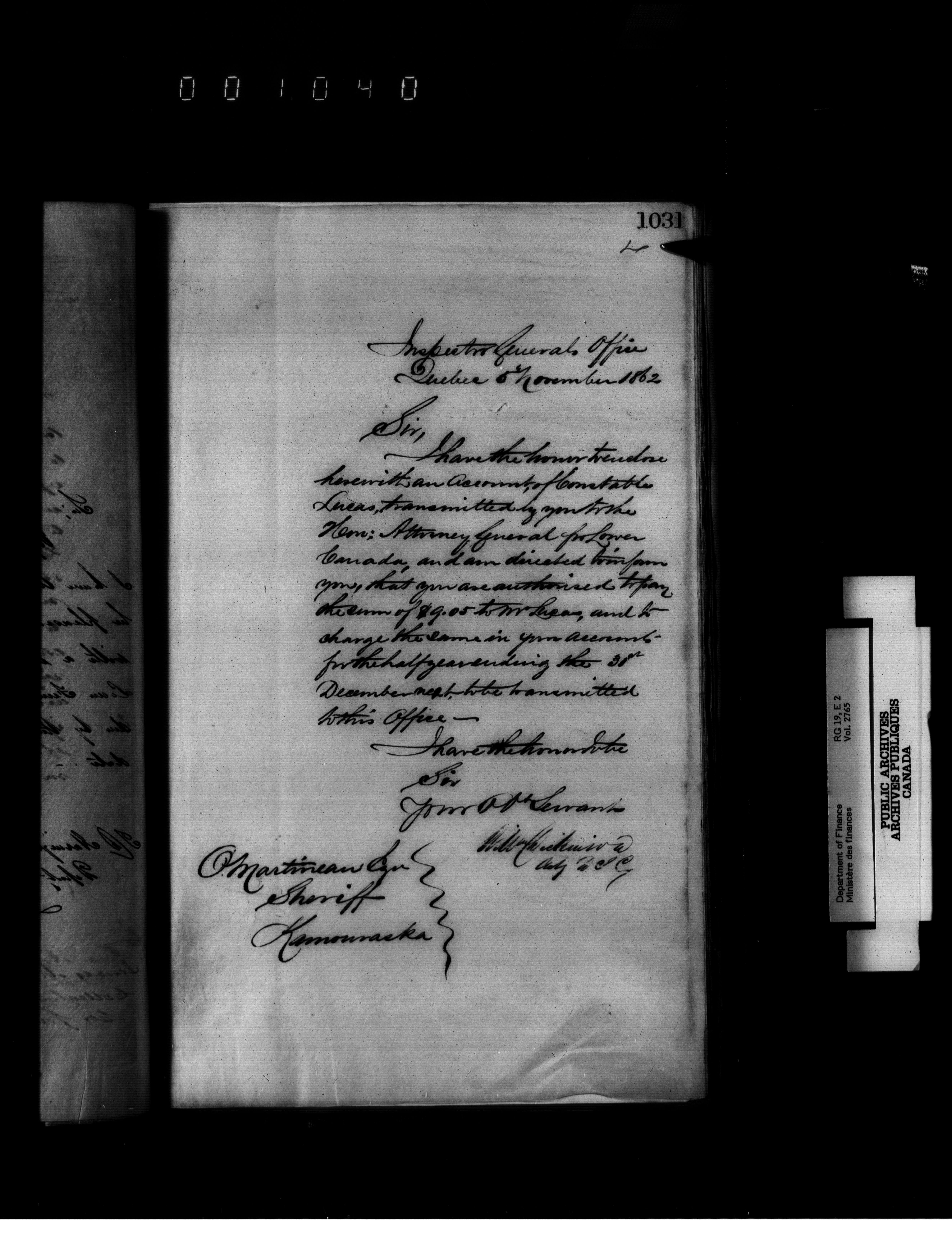 Outgoing correspondence of the office of the Deputy-Inspector General and Deputy Minister of Finance - 2641