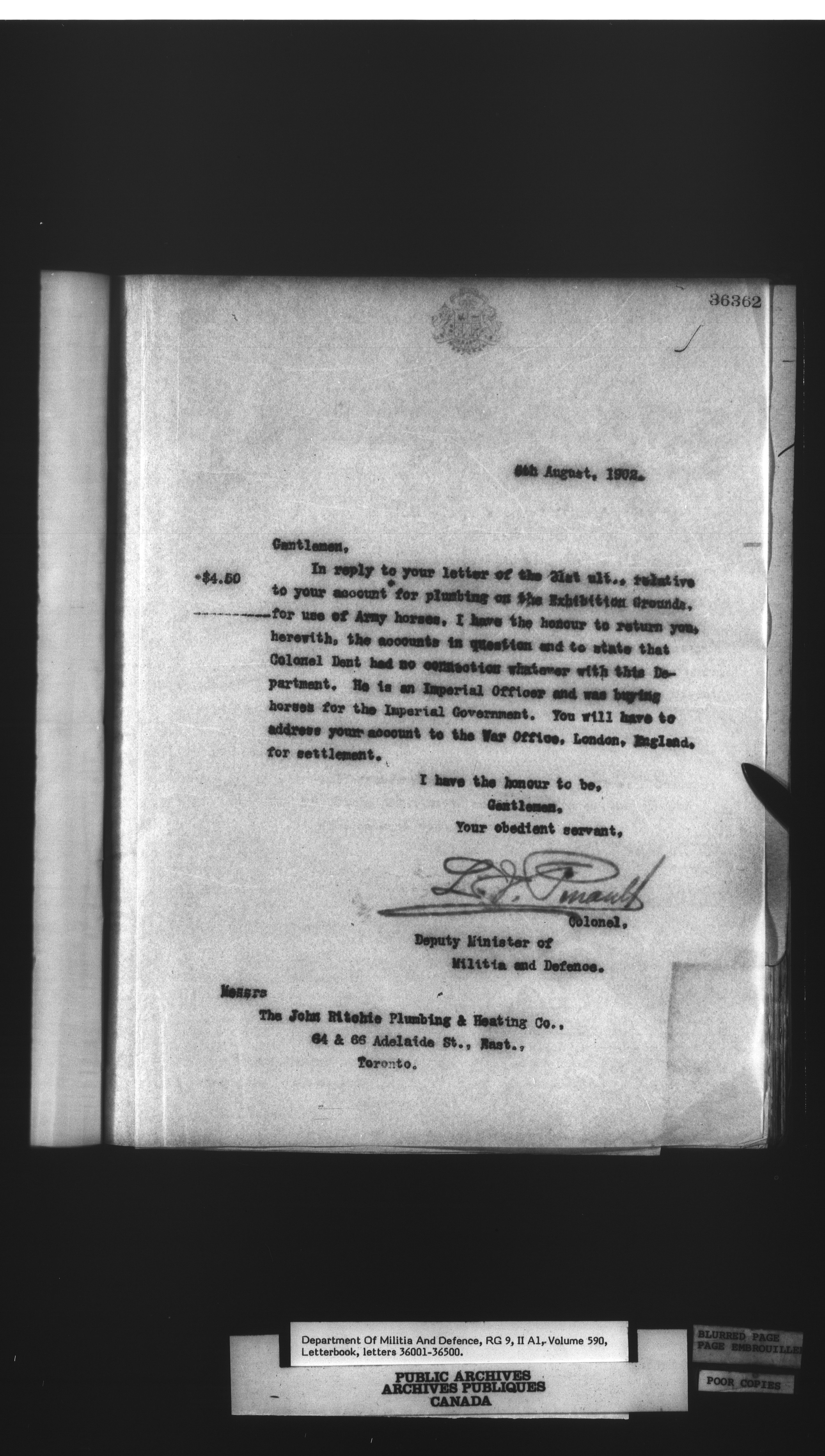 Letterbooks of the deputy minister and the adjutant general, 1868-1920 - 266
