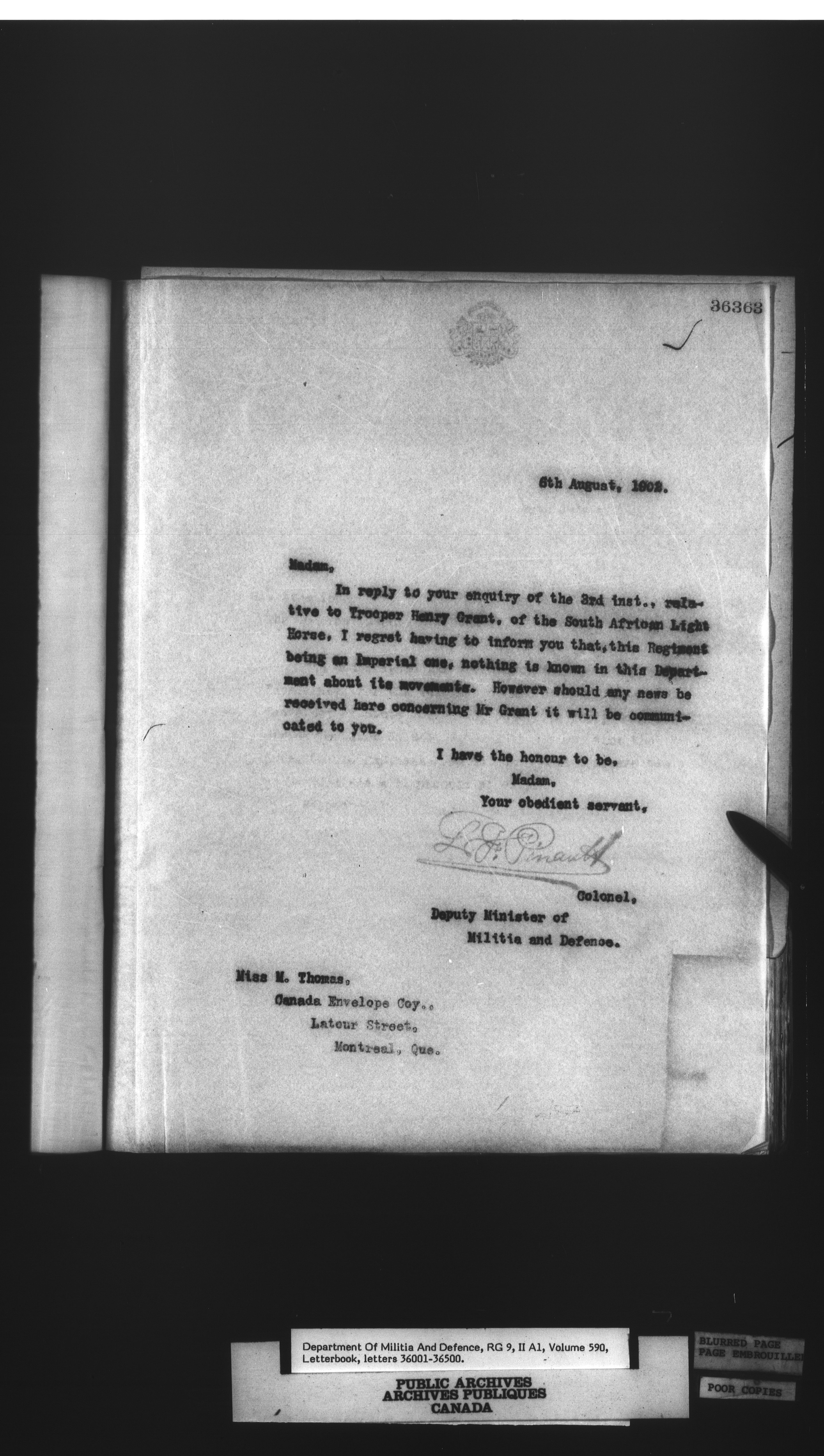 Letterbooks of the deputy minister and the adjutant general, 1868-1920 - 266